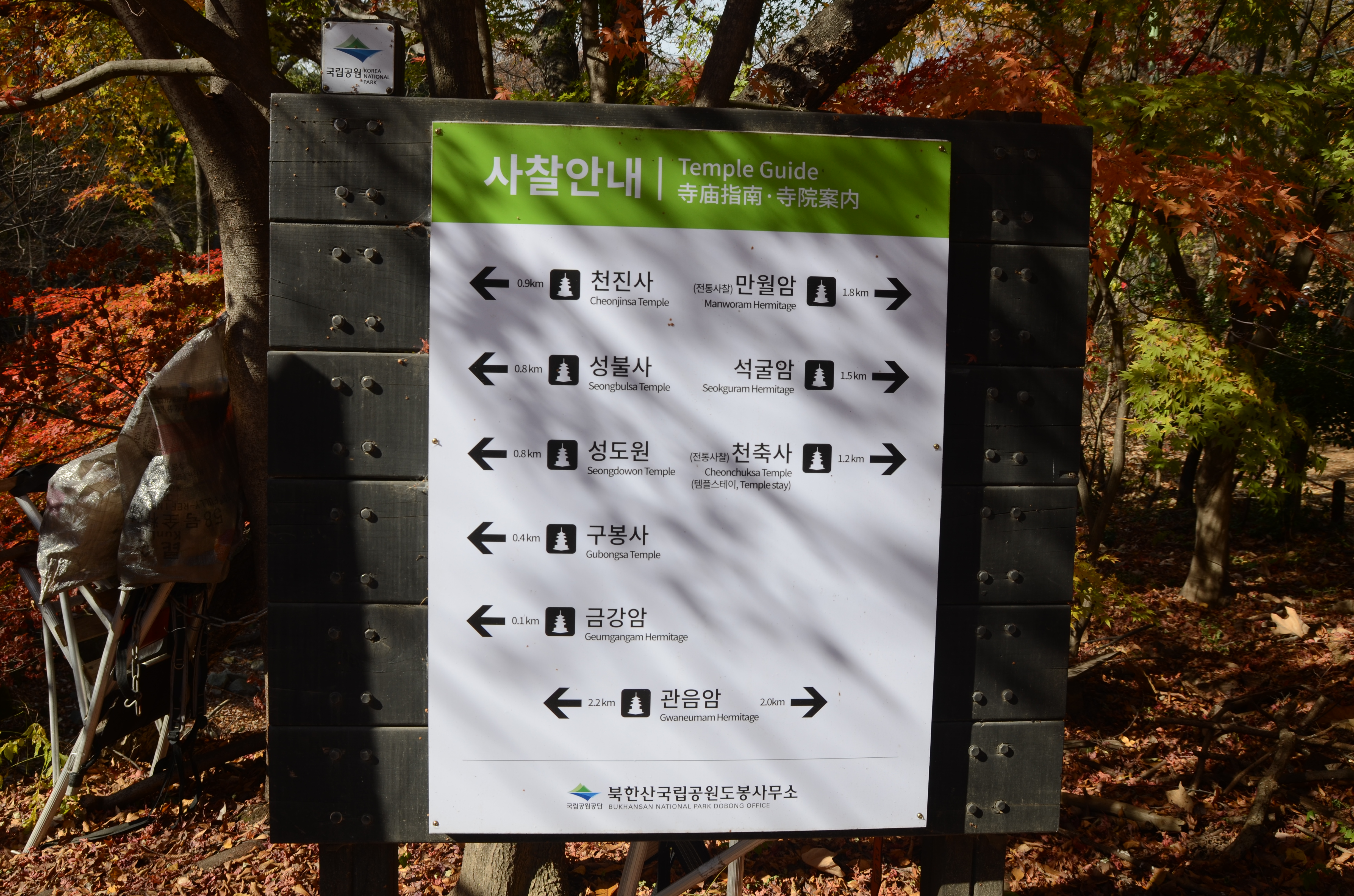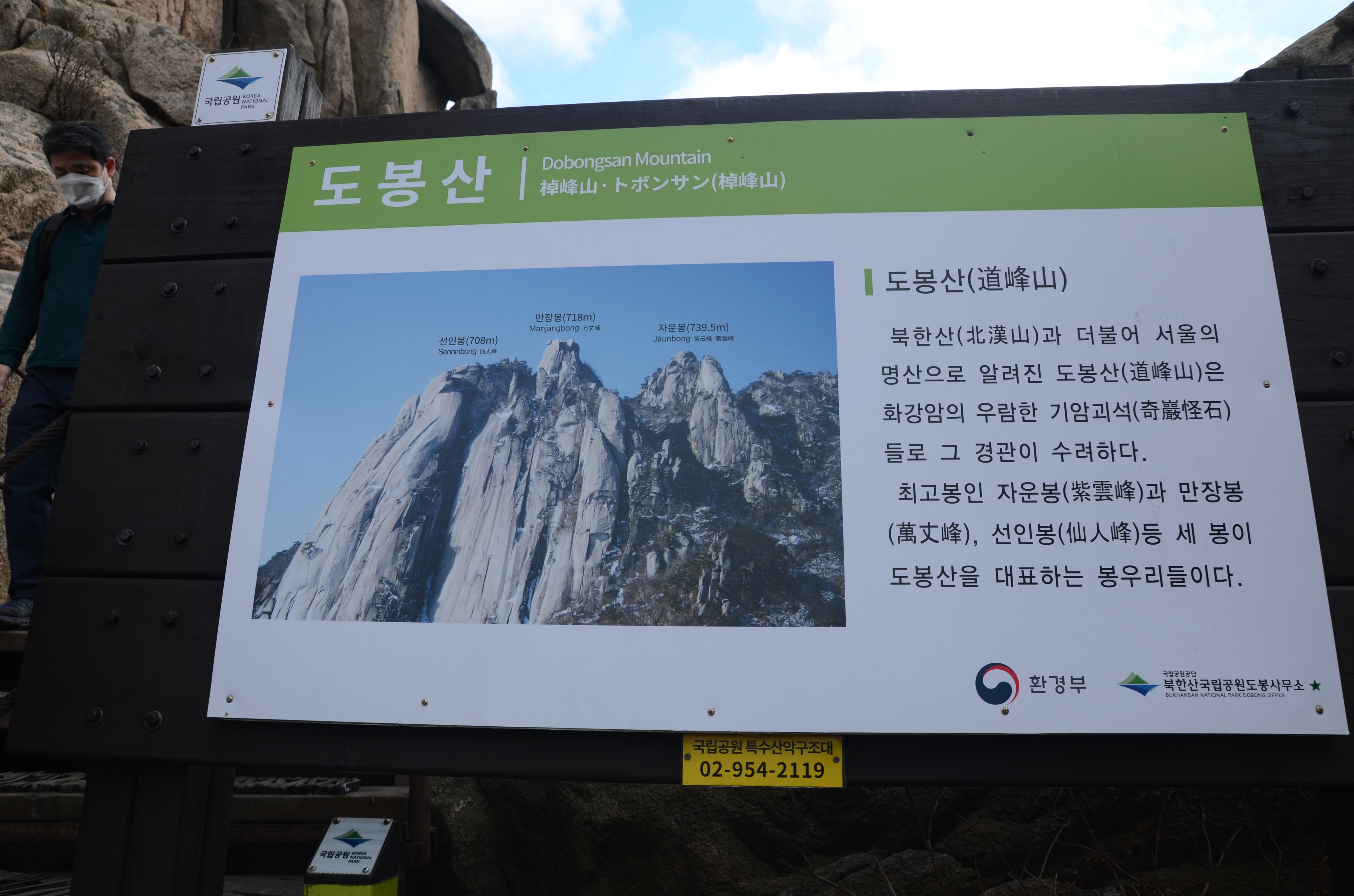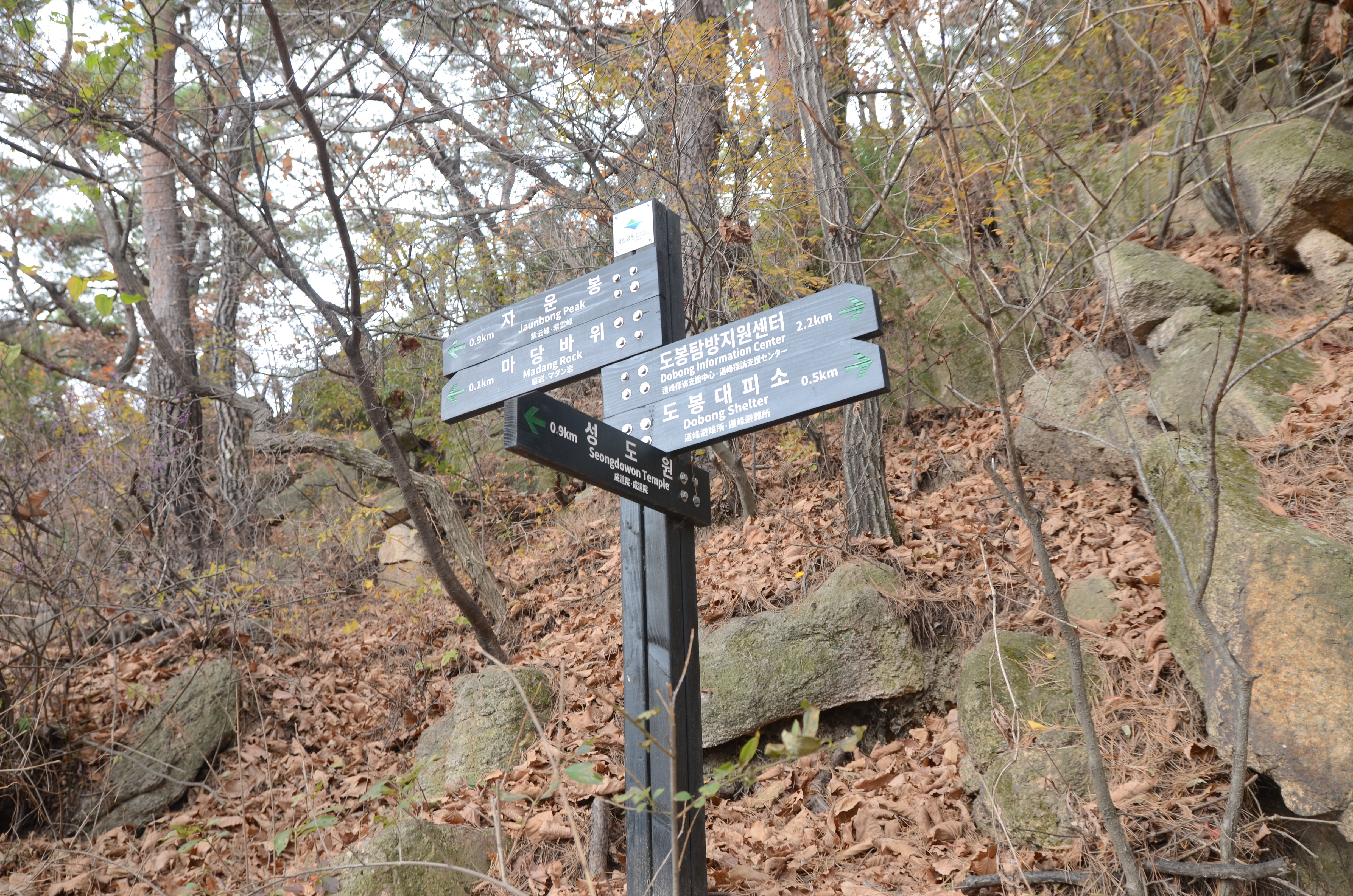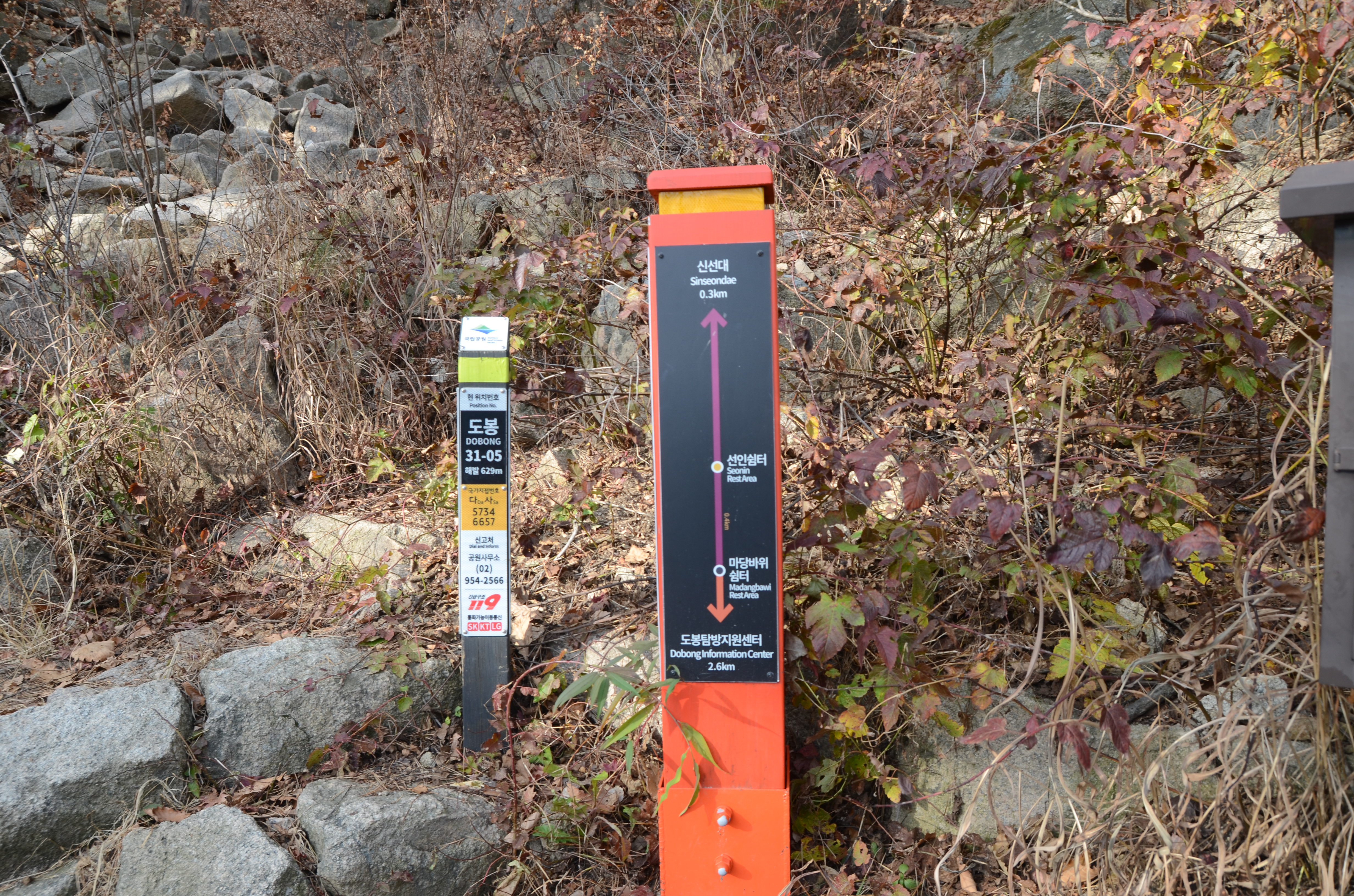 <- 2.5km 우이암, ↗ 2.15km 자운봉, ↗ 1.2km 천축사, ↗ 도봉탐대피소 0.8km, ↓ 도봉탐방지원센터 0.8km