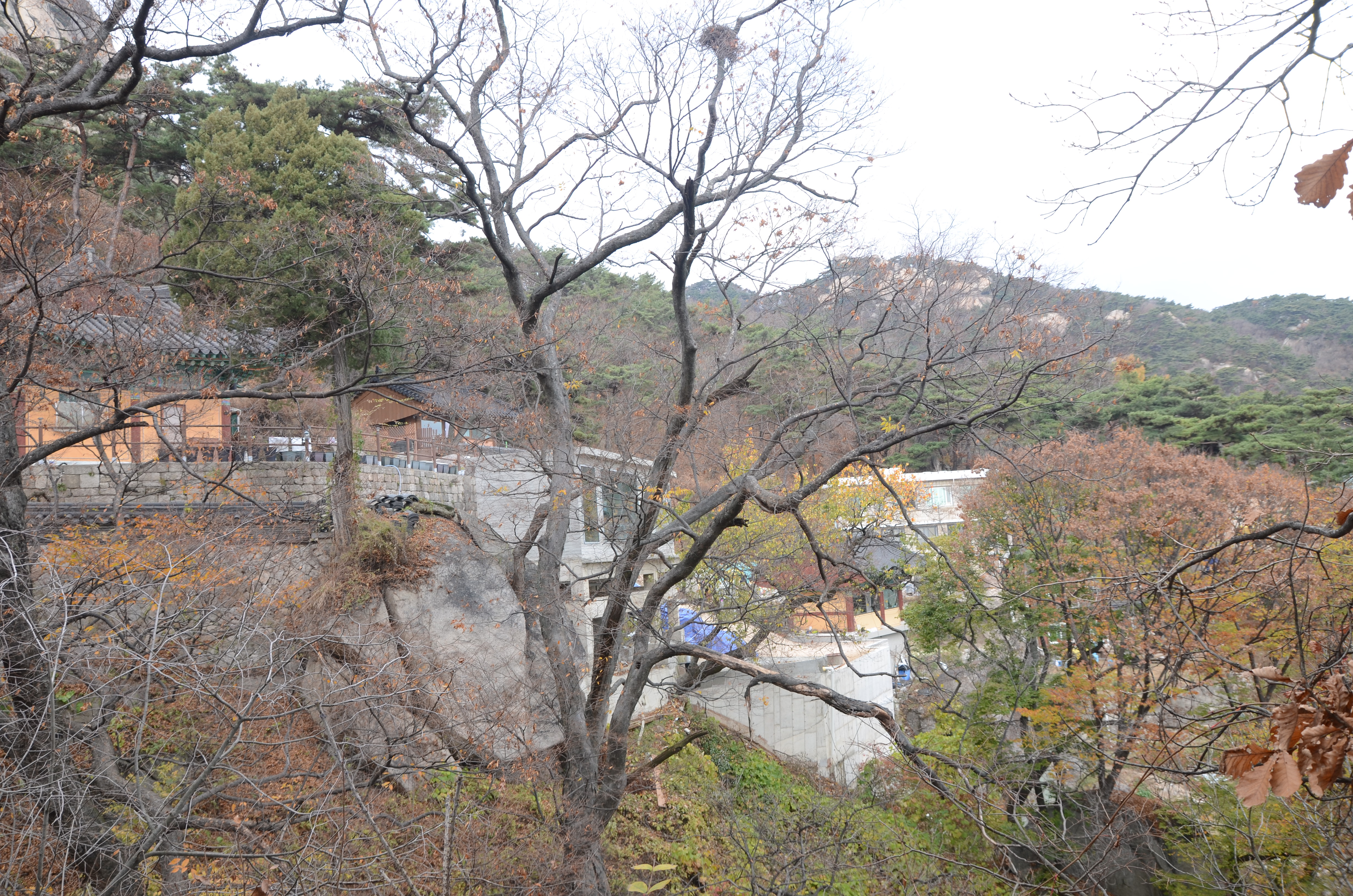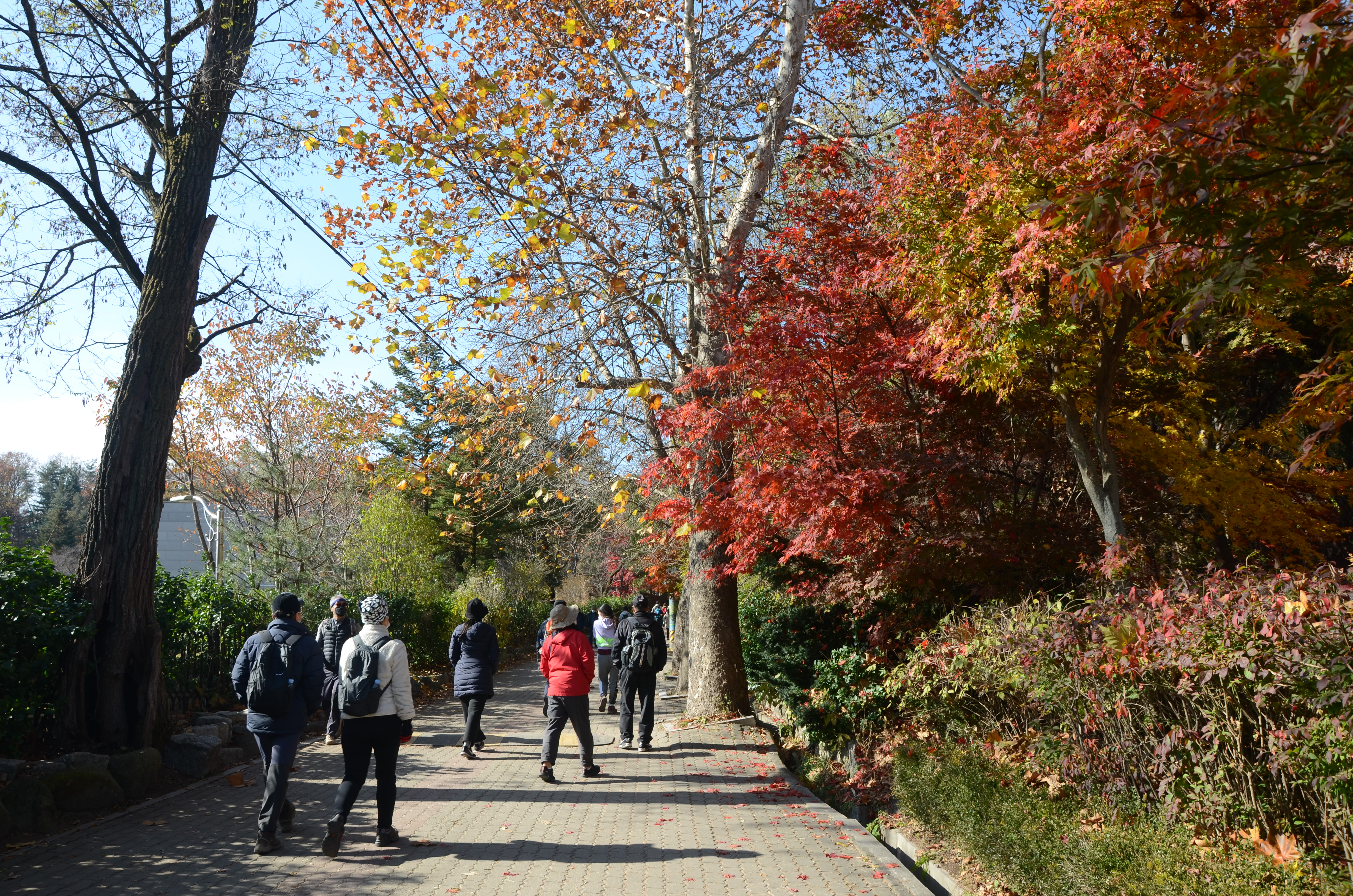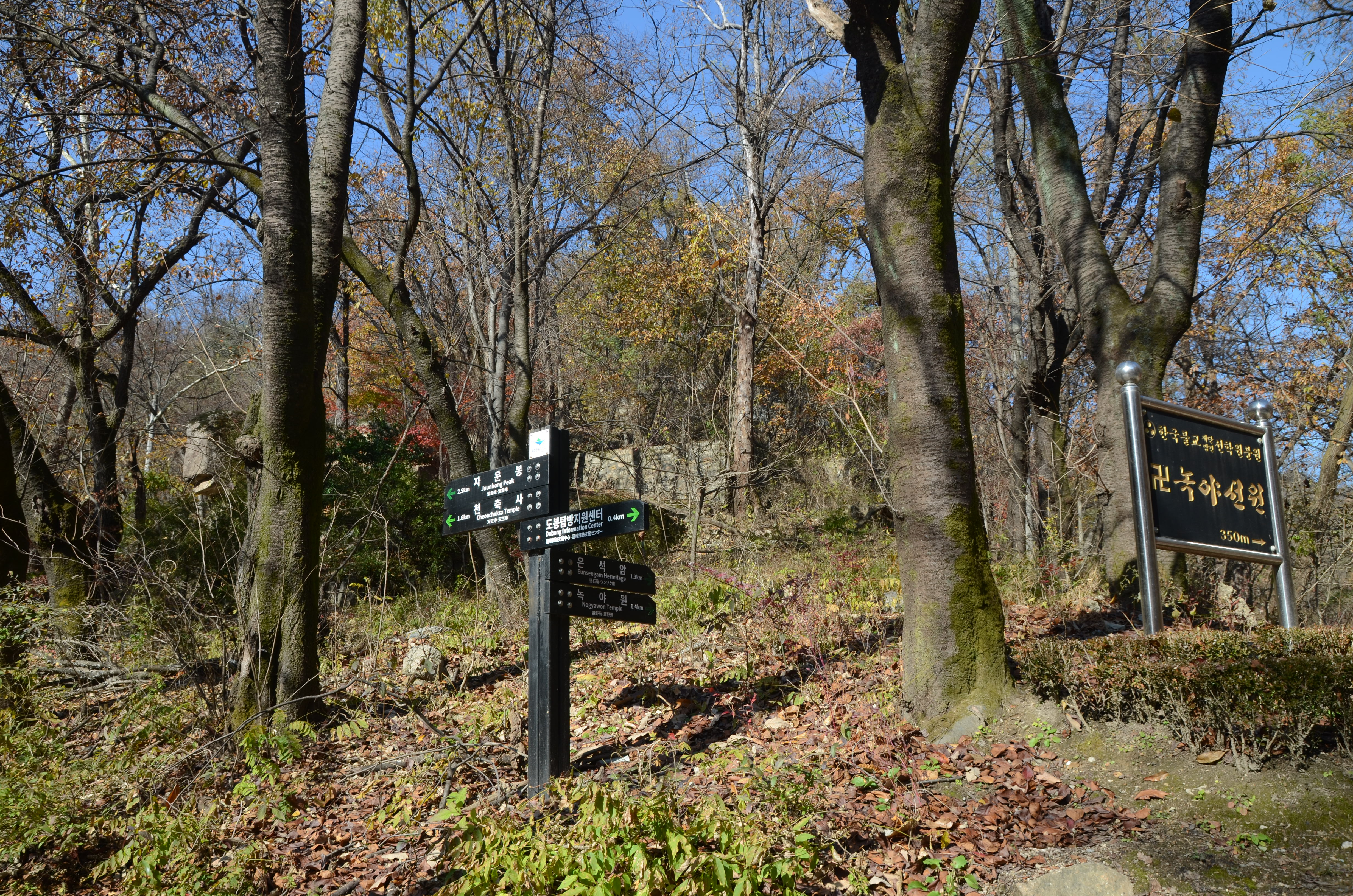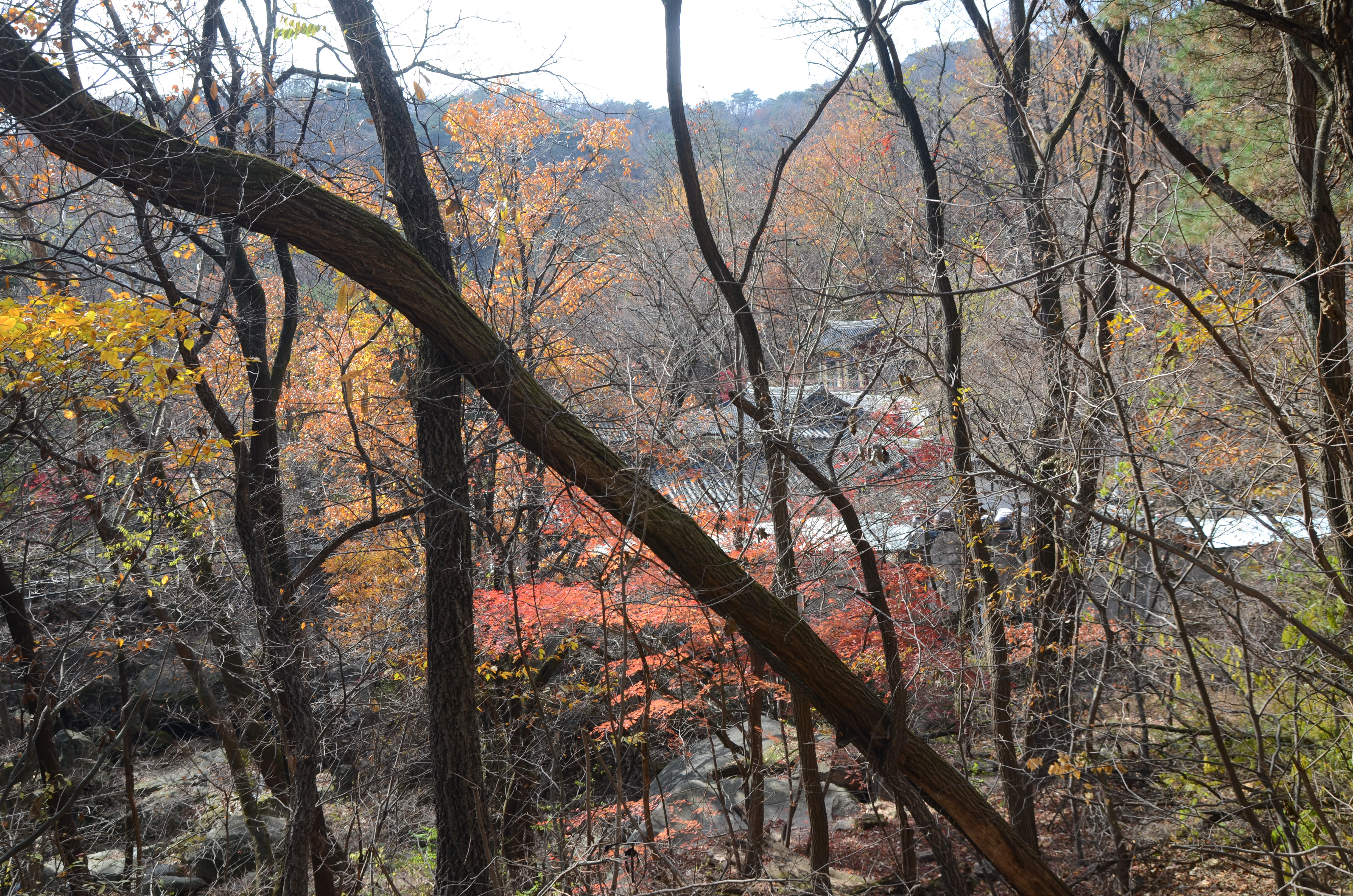 내려 갈 때는 천축사 방향 대신 오른쪽 능선길로 하산하려 하였습니다. 이 길은 흙길로 걷기에 좋습니다. 그런데, 이길로 하산하는 사람이 없었습니다. 마당바위에서 0.4km 정도 하산하니 성도원 이정표가 나옵니다. 원래 능선길은 왼쪽 능선 방향으로 계속 진행해야 하는데 이정표가 없습니다. 시간은 촉박한데, 확실한 길을 선택하기로 합니다. 그래서 성도원 코스를 택해 하산하게 되었습니다. 성도원 입구를 지나 계곡길이 계속되는데 걷기도 좋고 우이암 방향에서 내려오는 산객들도 있어 좋았습니다. 나중 구봉사 절 계곡에서는 짙은 단풍에 감탄하기도 했습니다. 처음의 도봉산탐방지원센터에 도착하니 5:29분이었으며 날이 저물고 있었습니다. 오늘 도봉산 산행 만점이었습니다.