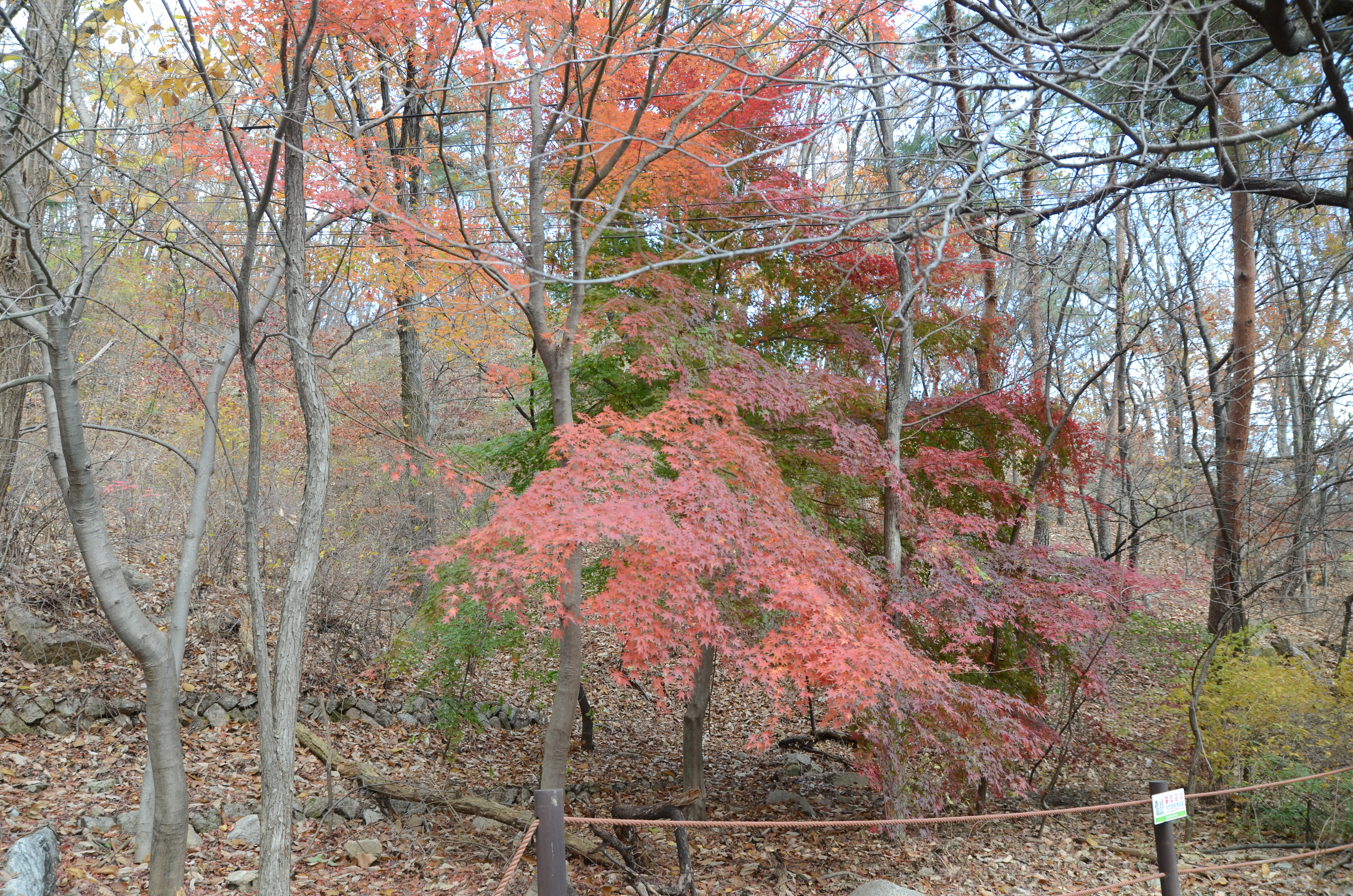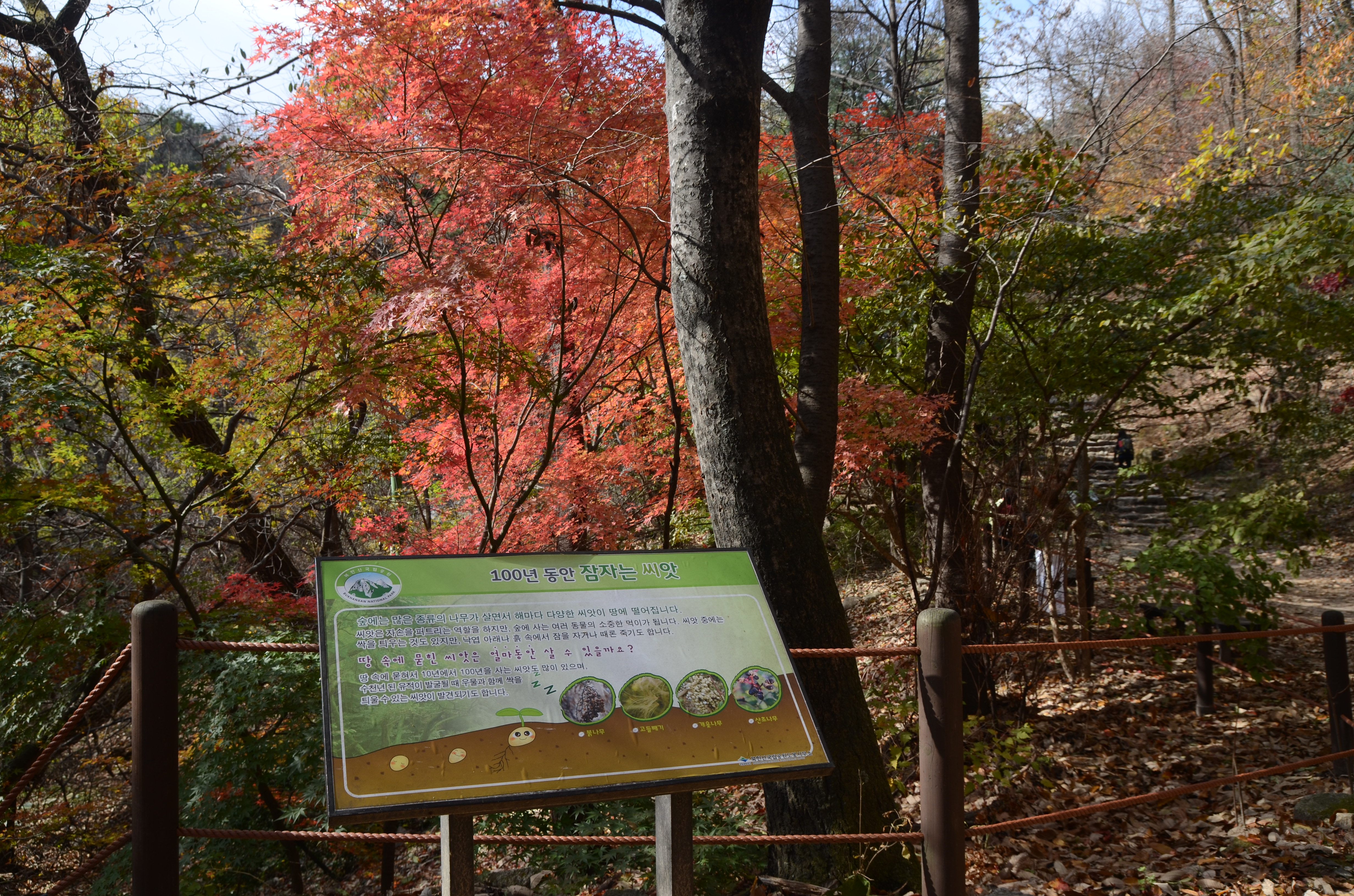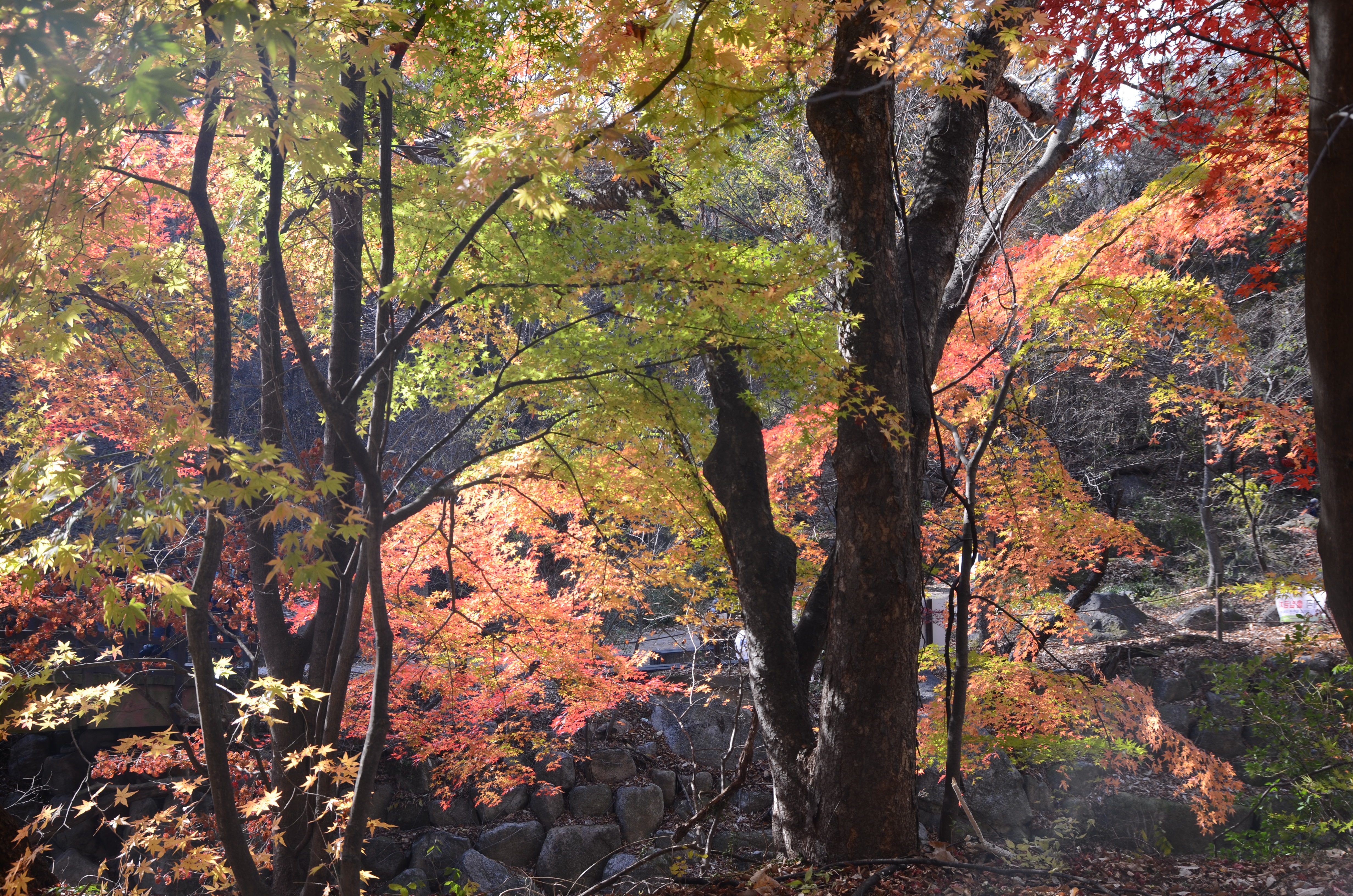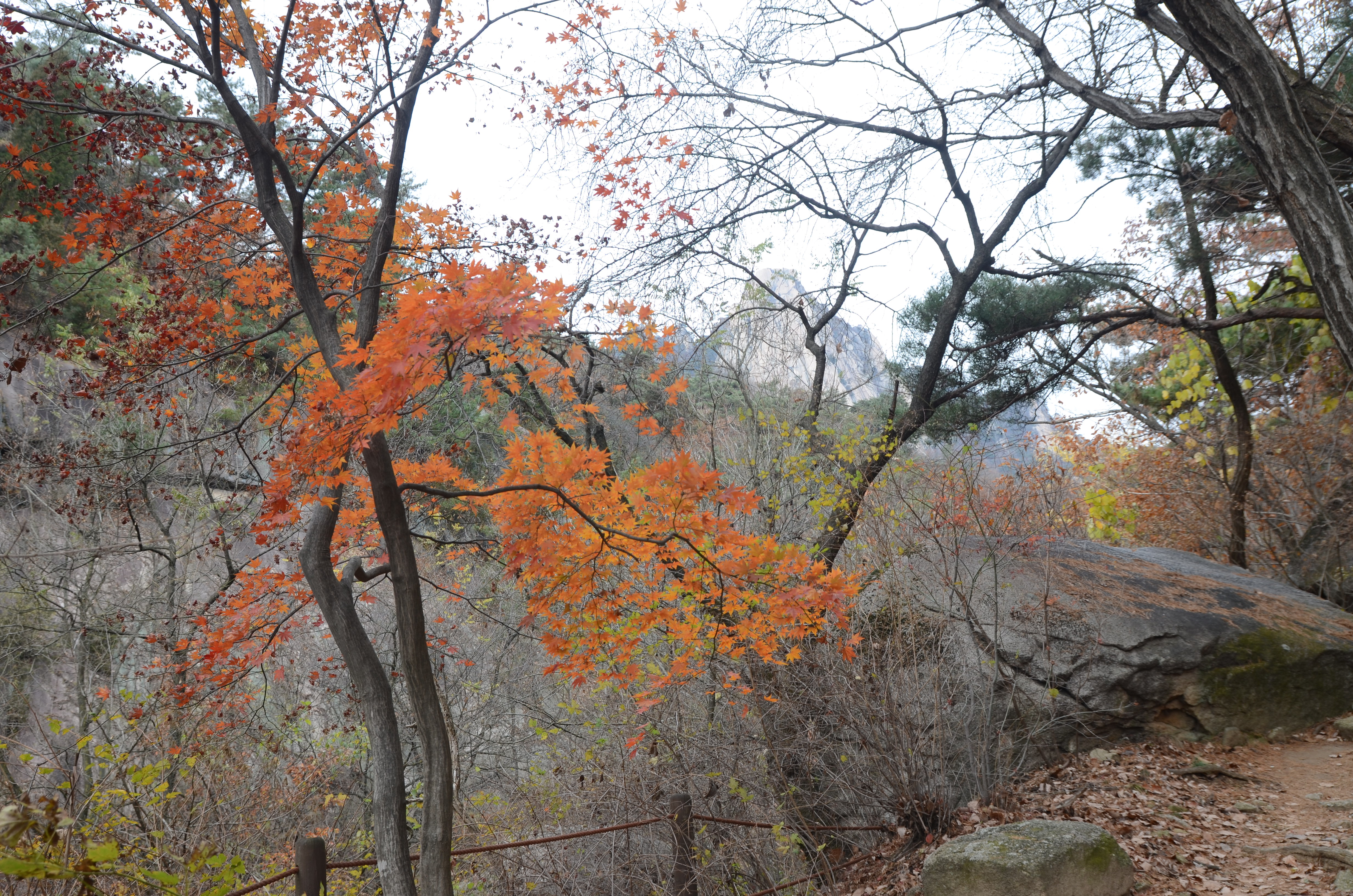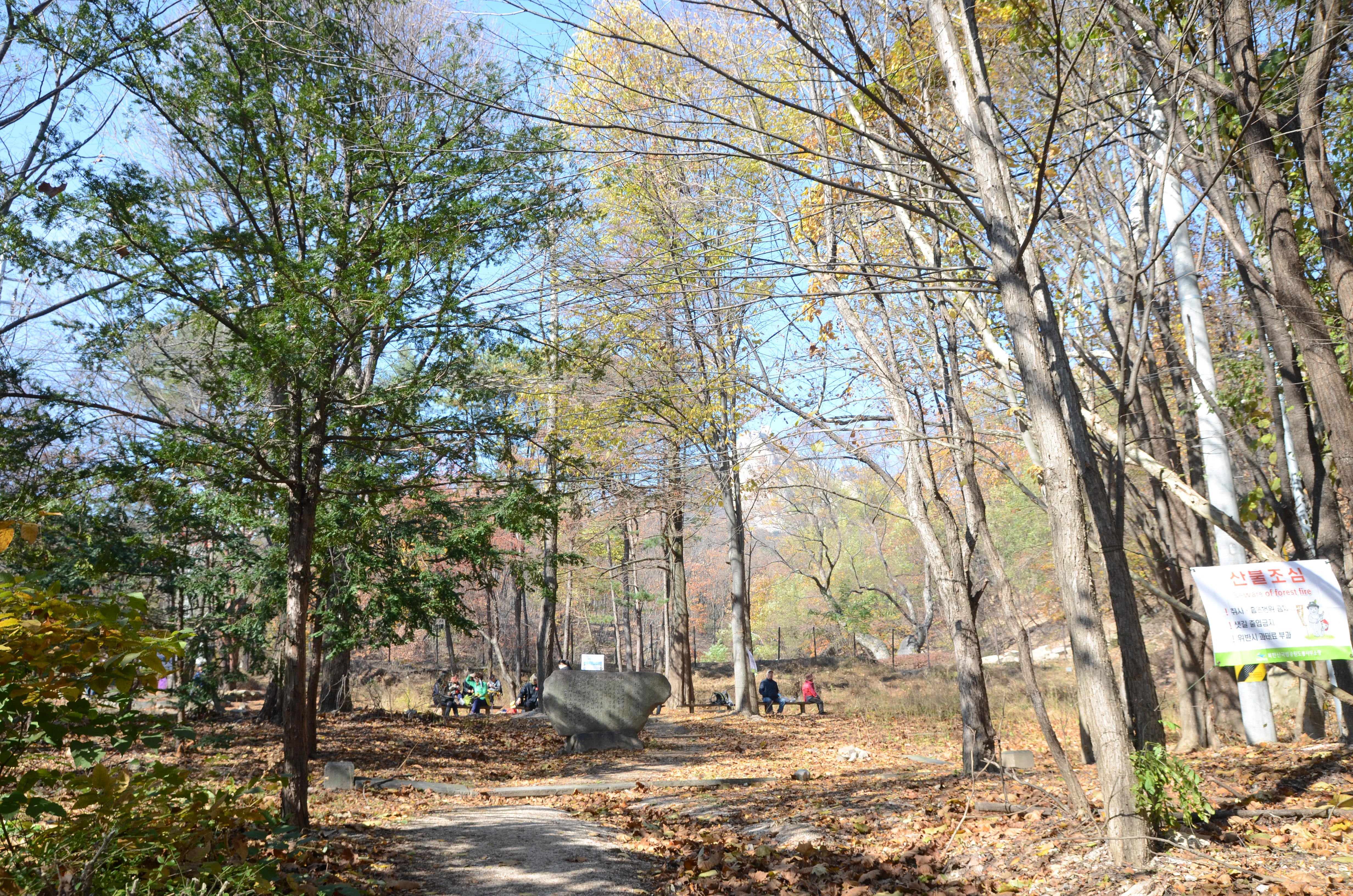 내려 갈 때는 천축사 방향 대신 오른쪽 능선길로 하산하려 하였습니다. 이 길은 흙길로 걷기에 좋습니다. 그런데, 이길로 하산하는 사람이 없었습니다. 마당바위에서 0.4km 정도 하산하니 성도원 이정표가 나옵니다. 원래 능선길은 왼쪽 능선 방향으로 계속 진행해야 하는데 이정표가 없습니다. 시간은 촉박한데, 확실한 길을 선택하기로 합니다. 그래서 성도원 코스를 택해 하산하게 되었습니다. 성도원 입구를 지나 계곡길이 계속되는데 걷기도 좋고 우이암 방향에서 내려오는 산객들도 있어 좋았습니다. 나중 구봉사 절 계곡에서는 짙은 단풍에 감탄하기도 했습니다. 처음의 도봉산탐방지원센터에 도착하니 5:29분이었으며 날이 저물고 있었습니다. 오늘 도봉산 산행 만점이었습니다.