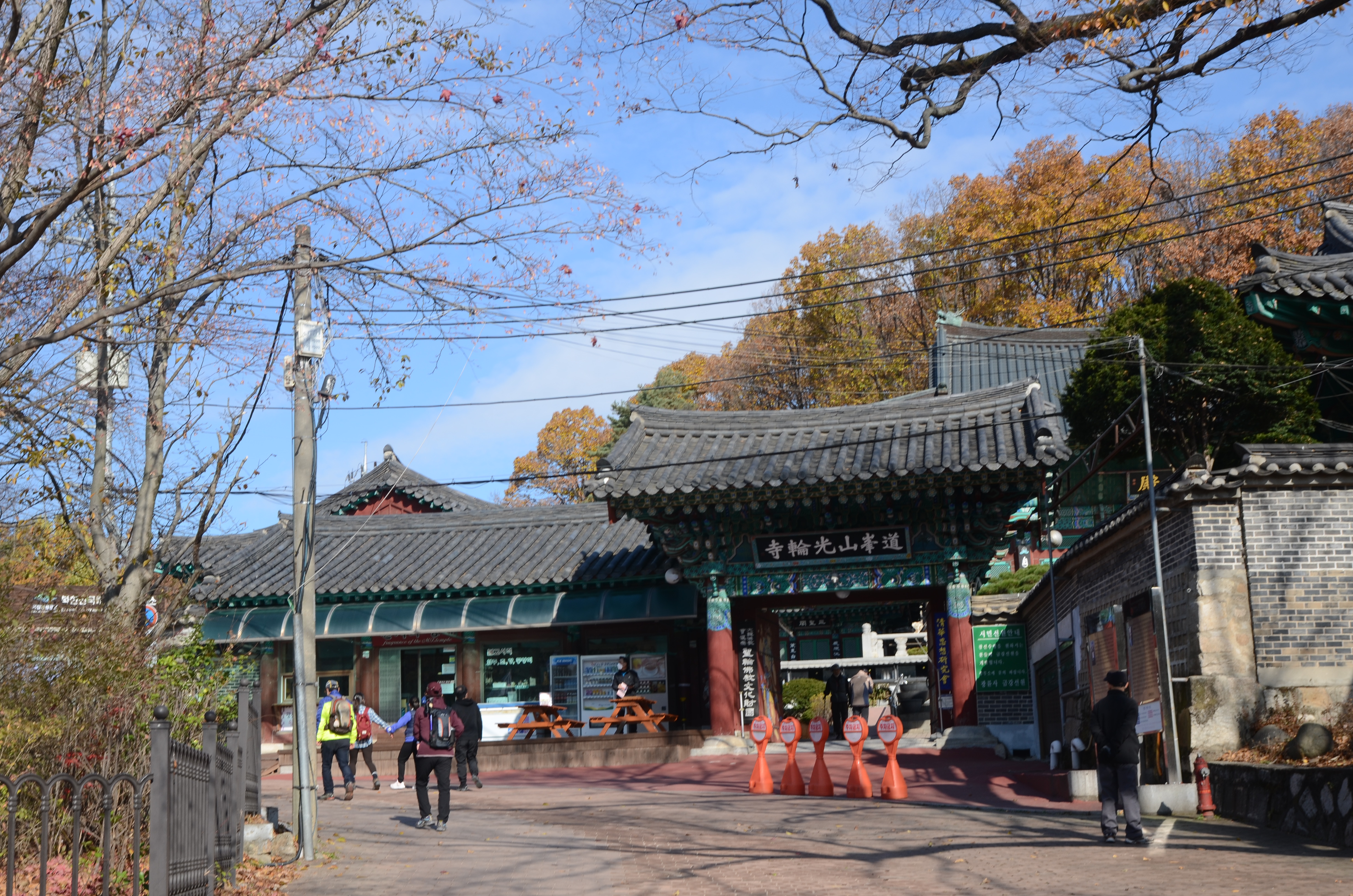 오늘 나는 가벼운 마음으로 도봉산을 찾았습니다. 전날 밤 내내 도봉산 산행 코스를 그리고 있었습니다. 잡도 오지 않았습니다. 도봉산 우이암 코스로 우이암과 원통사를 거쳐 우이 남능선을 따라 우이동으로 하산할까? 또는 가장 표준이 되는 마당바위 코스, 도봉대피소, 천축사를 거쳐 마당바위를 지나 도봉산 신선대에 오른 후 포대능선을 지나 망월사를 거쳐 하산하여 의정부 호원동 방향으로 내려설까? 아니면 도봉산 녹야원 코스로 올라가 다락능선 끝에서 도봉산 선인봉을 바로 눈 앞에 바라보고 감탄 한 후 포대능선를 지나 신선대를 거쳐 마당바위 방향으로 하산할까? 등등 여러 코스를 생각해 보기도 했습니다. 그러면서 잠을 설치다 아침에 일어나 있다 가벼운 마음으로 마당바위나 가볼까 하고 10시가 넘어 집을 나섰습니다. 그리고 도봉산역에 내리니 11:10분 경입니다. 해가 빨리 지는 요즈음에는 조금 늦은 시간이다 느끼며 도봉산 등산로 입구를 향해 가면서 김밥 한 줄(2,500원)을 사서 가방에 넣고 많은 사람들의 행렬을 따라 갑니다.