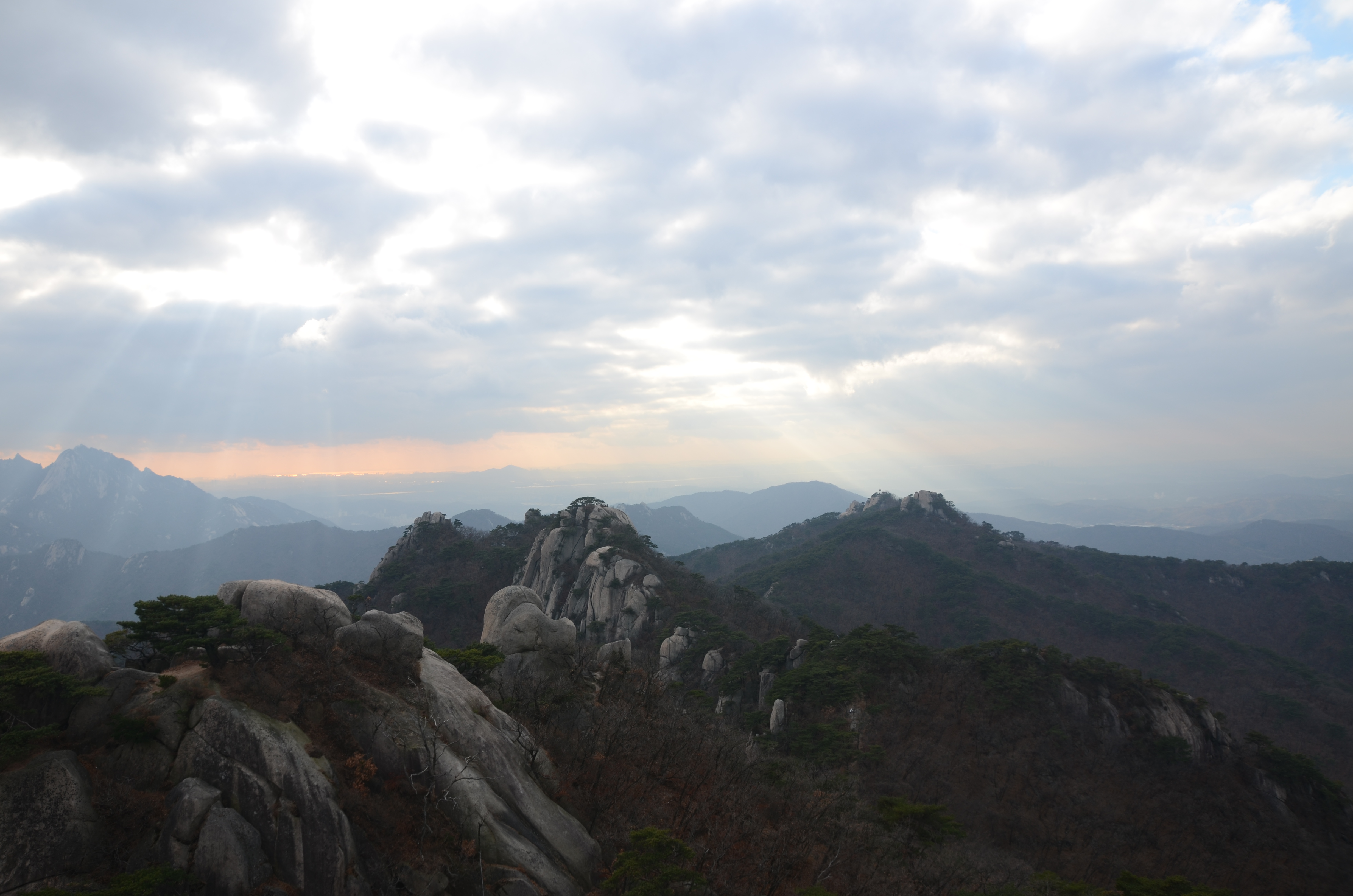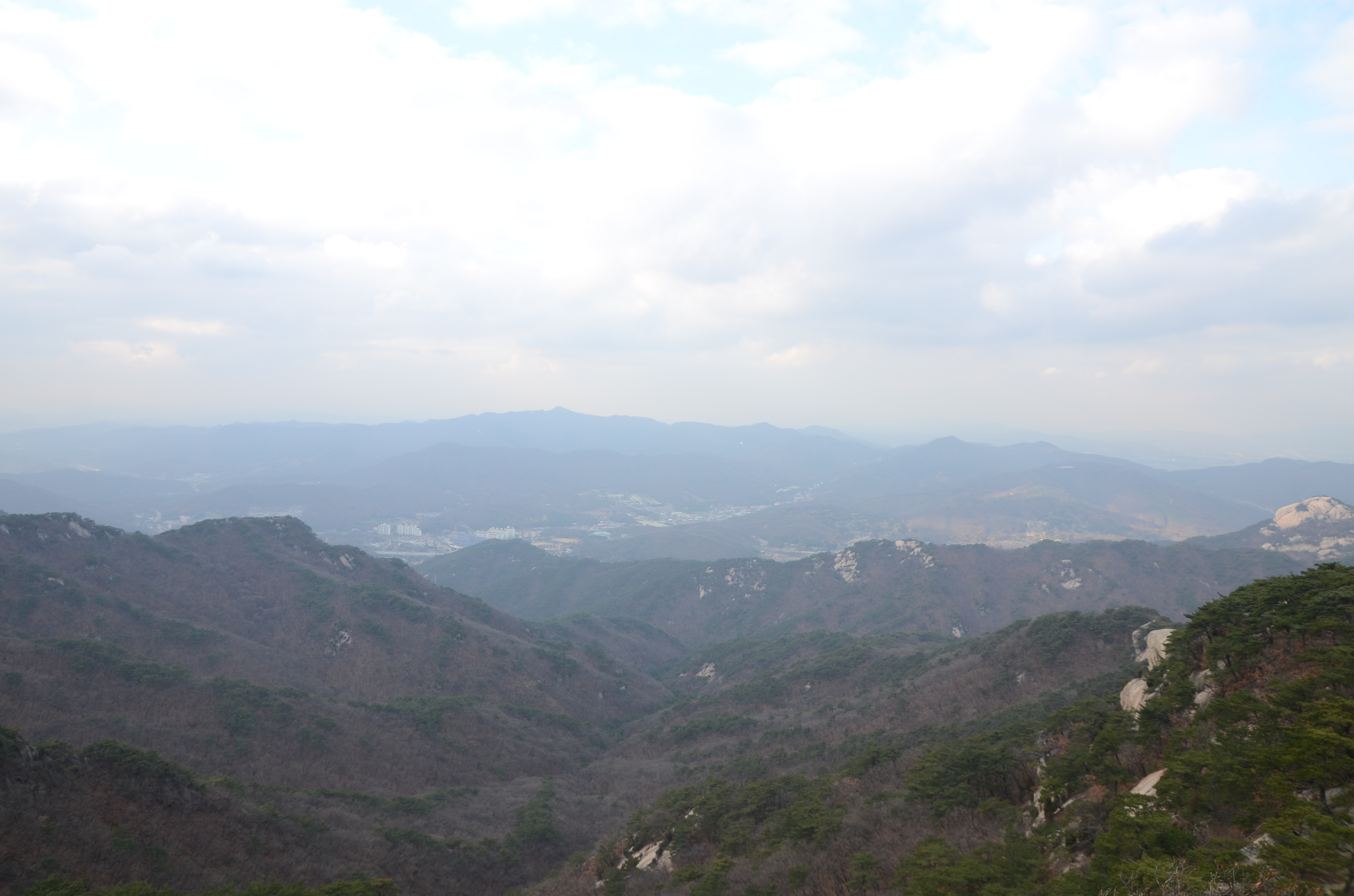 멀리 북한산(삼각산), 그리고 바로 앞의 도봉산 주봉 방향