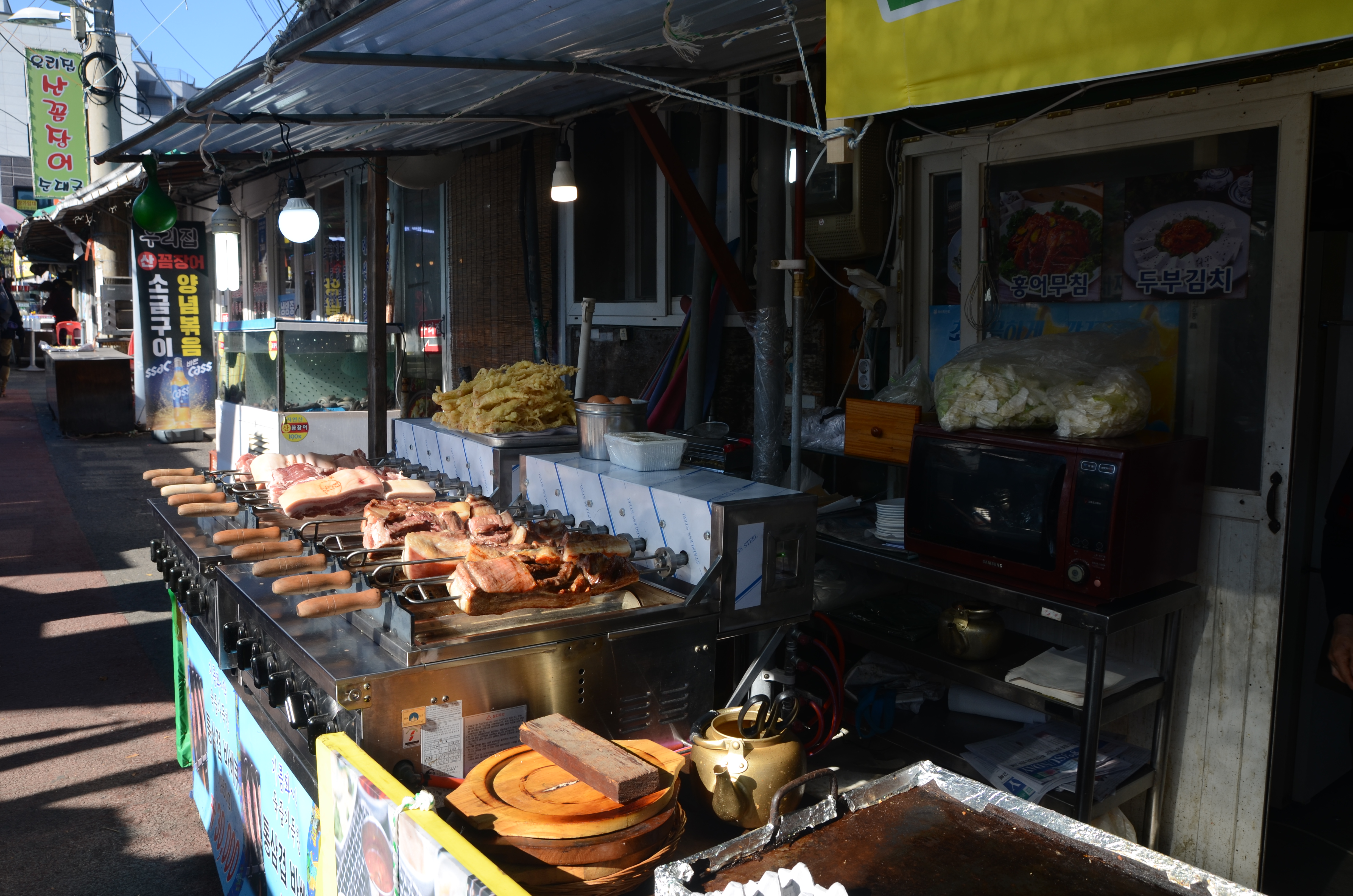 이곳에 늘어서 있는 간이판매점...고소한 전어구이 냄새가 진동한다. 파전 등등 등산객들을 부르는 것 같았다.