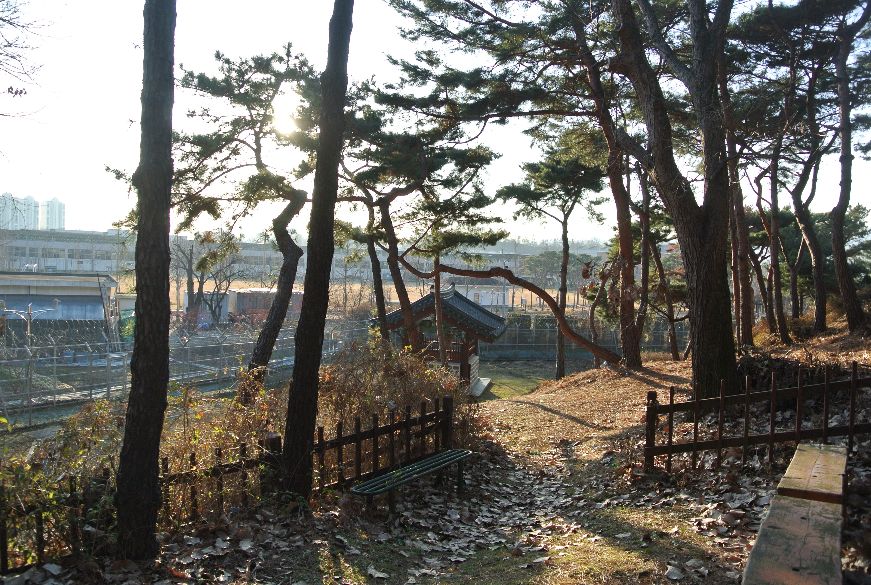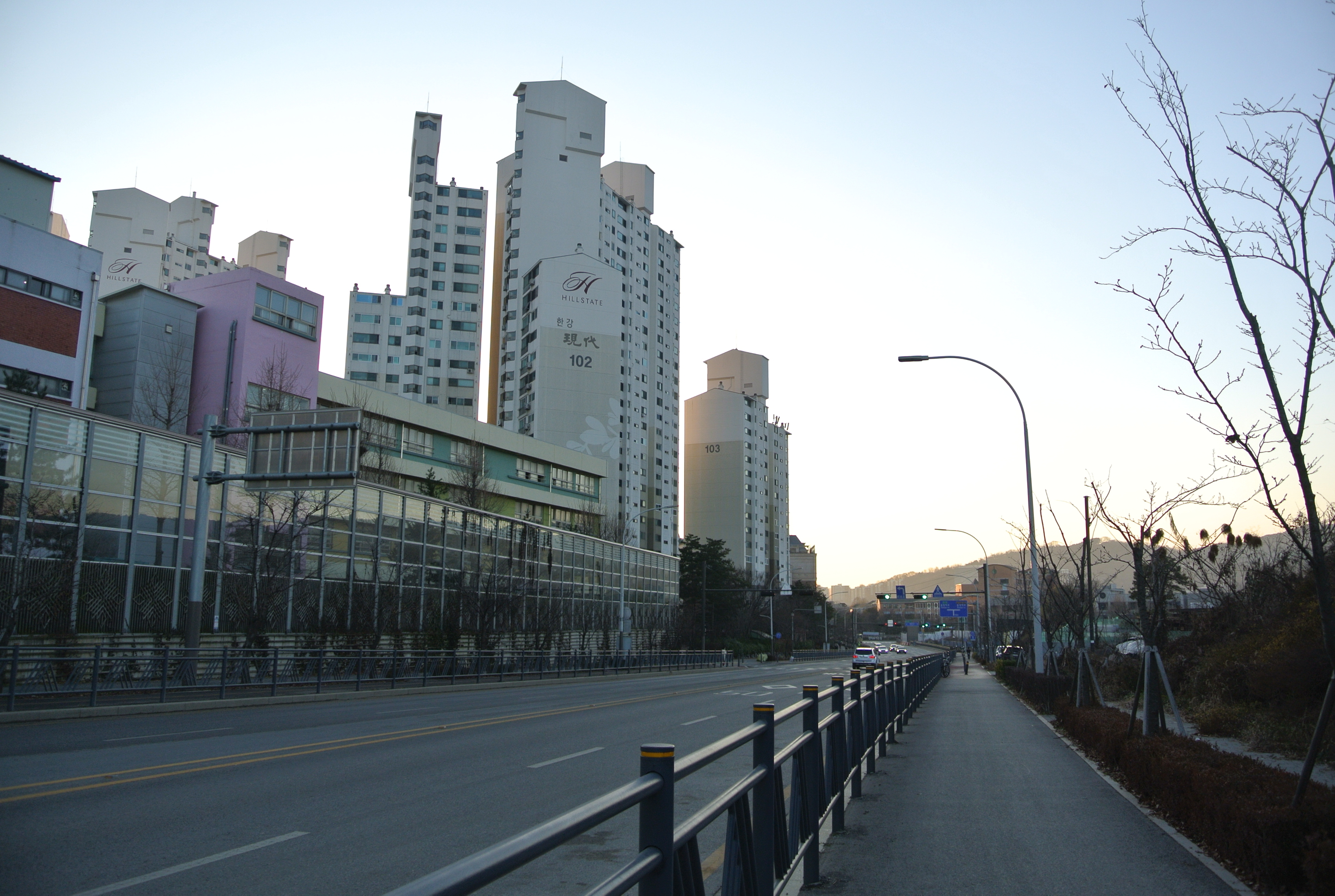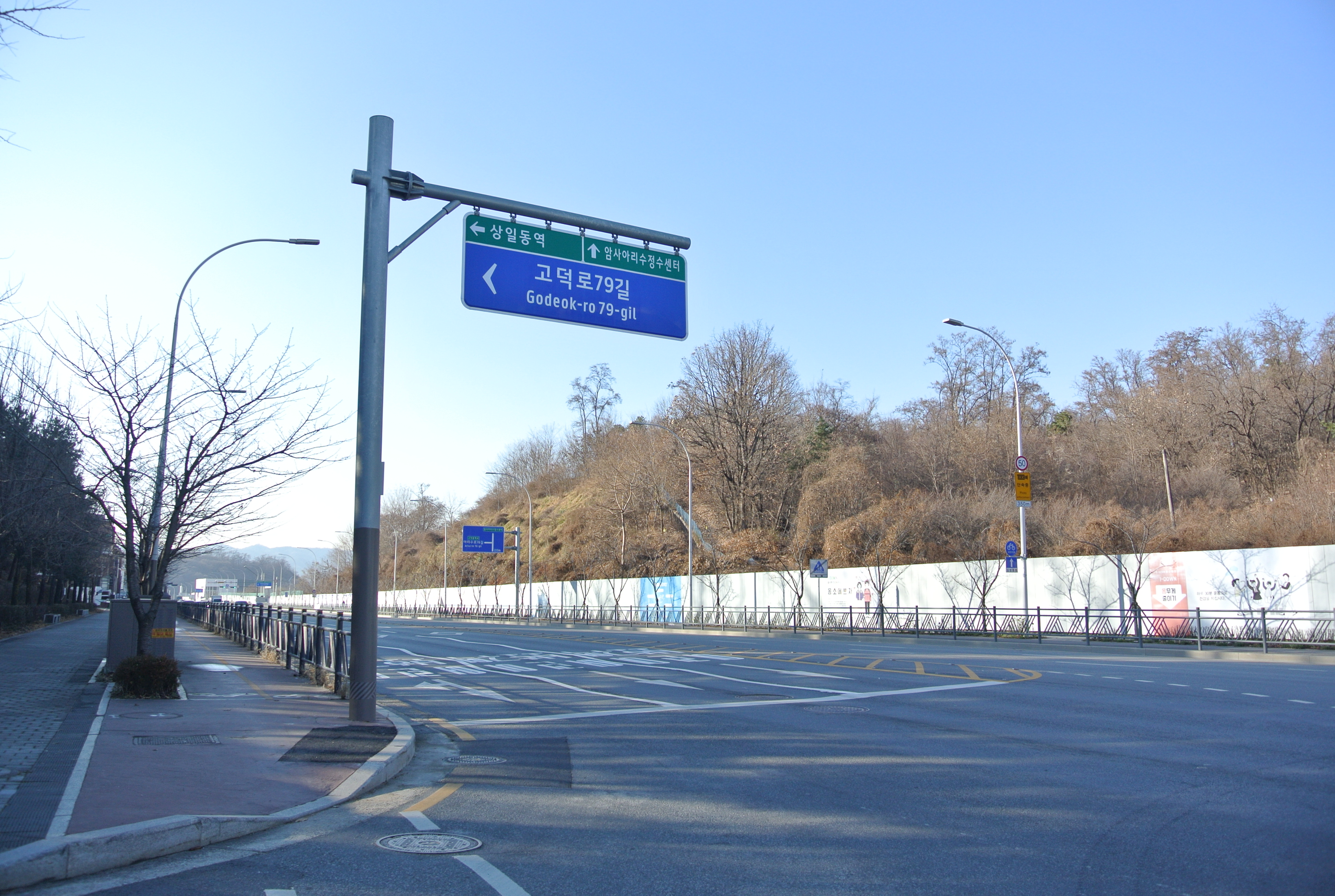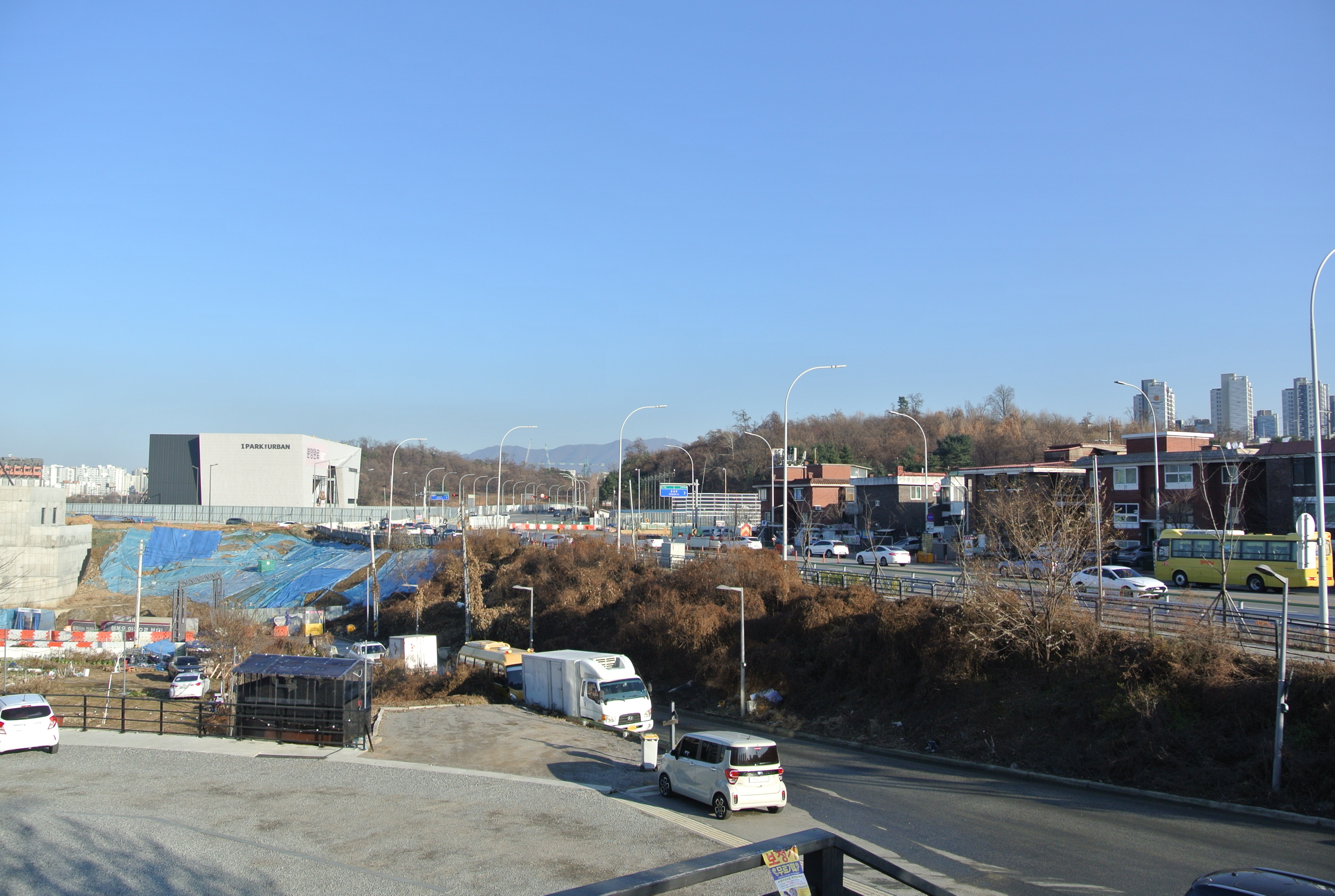 알의 오른쪽 야산은 방죽근린공원, 왼쪽은 고덕천 곁의 강일동 야산.