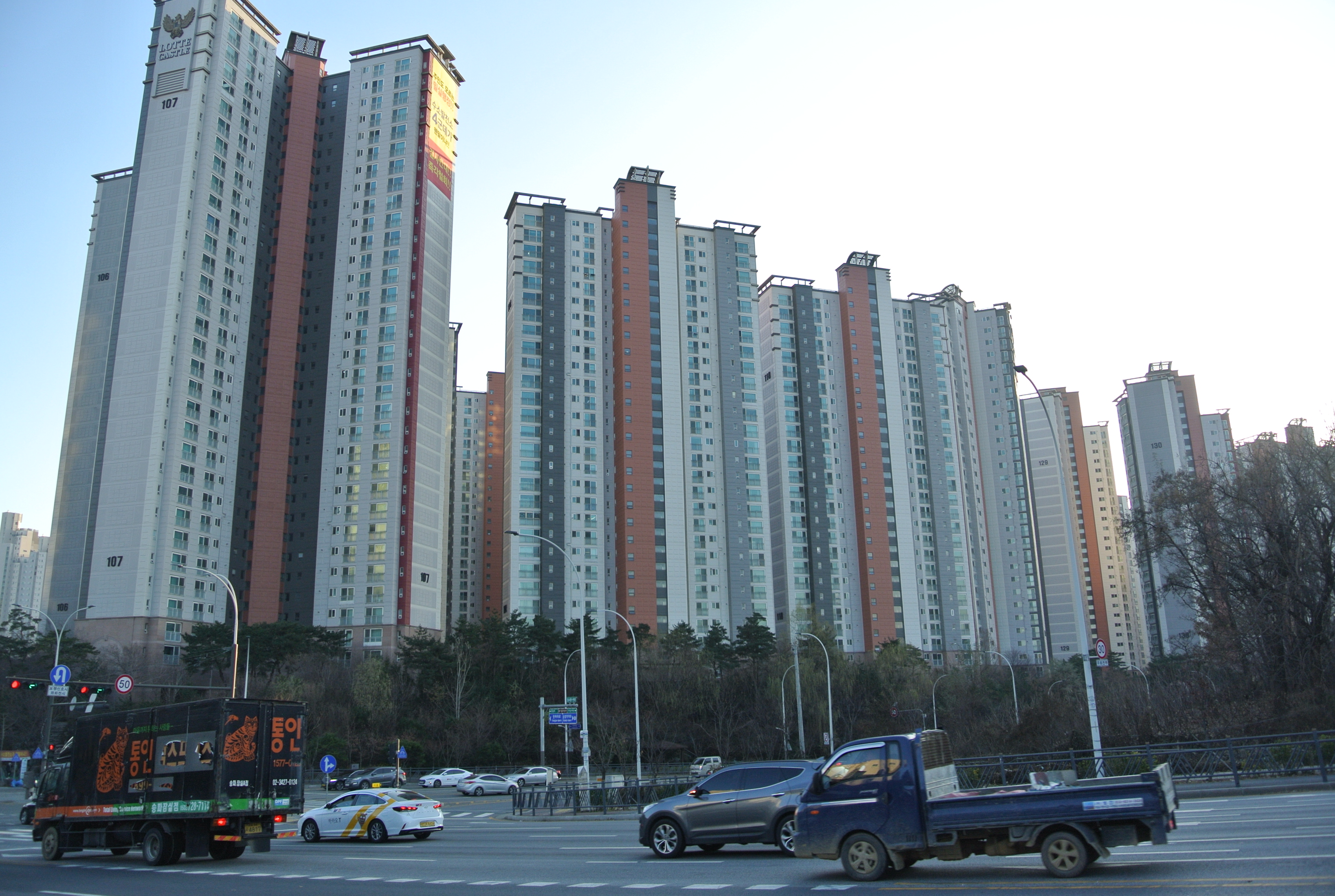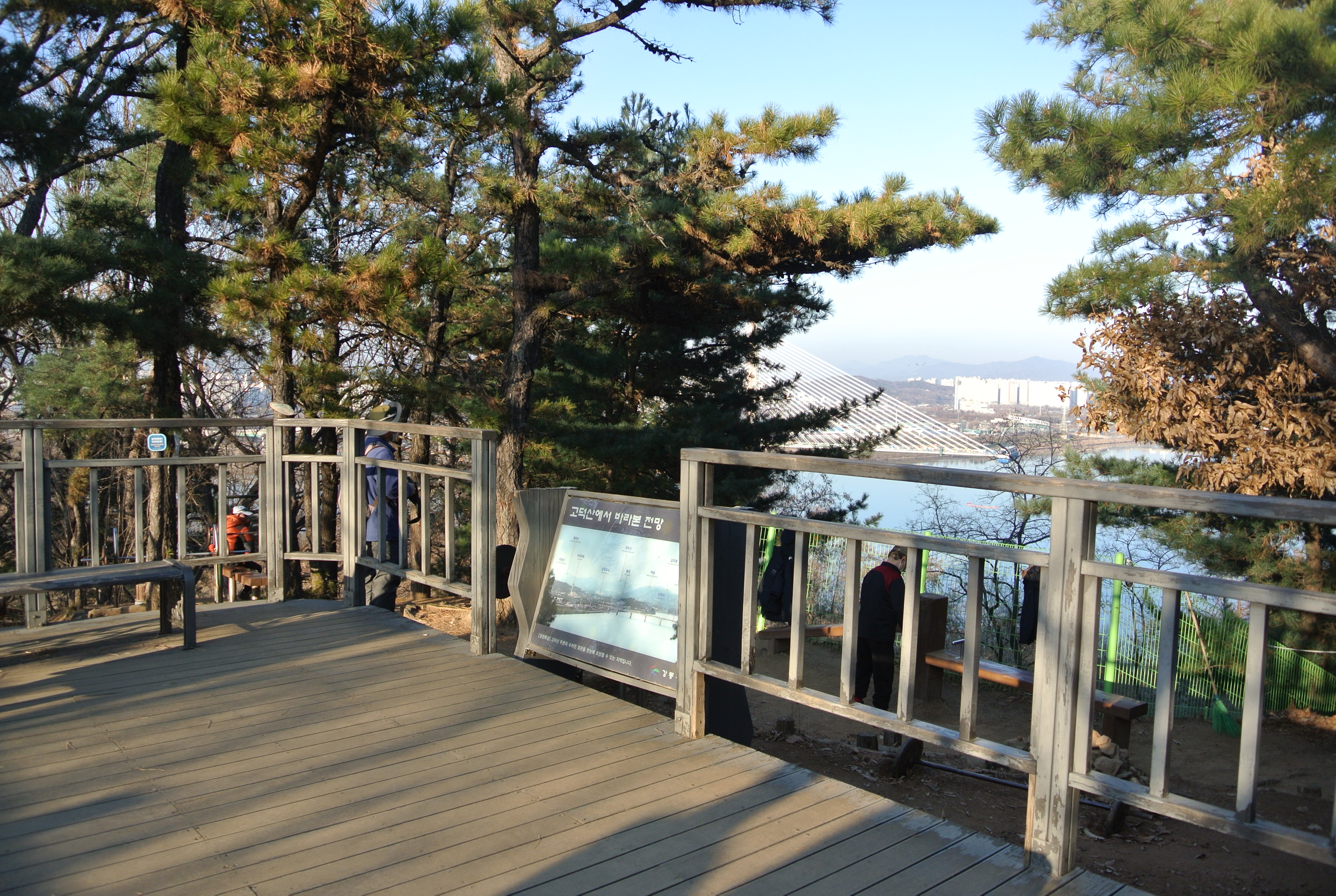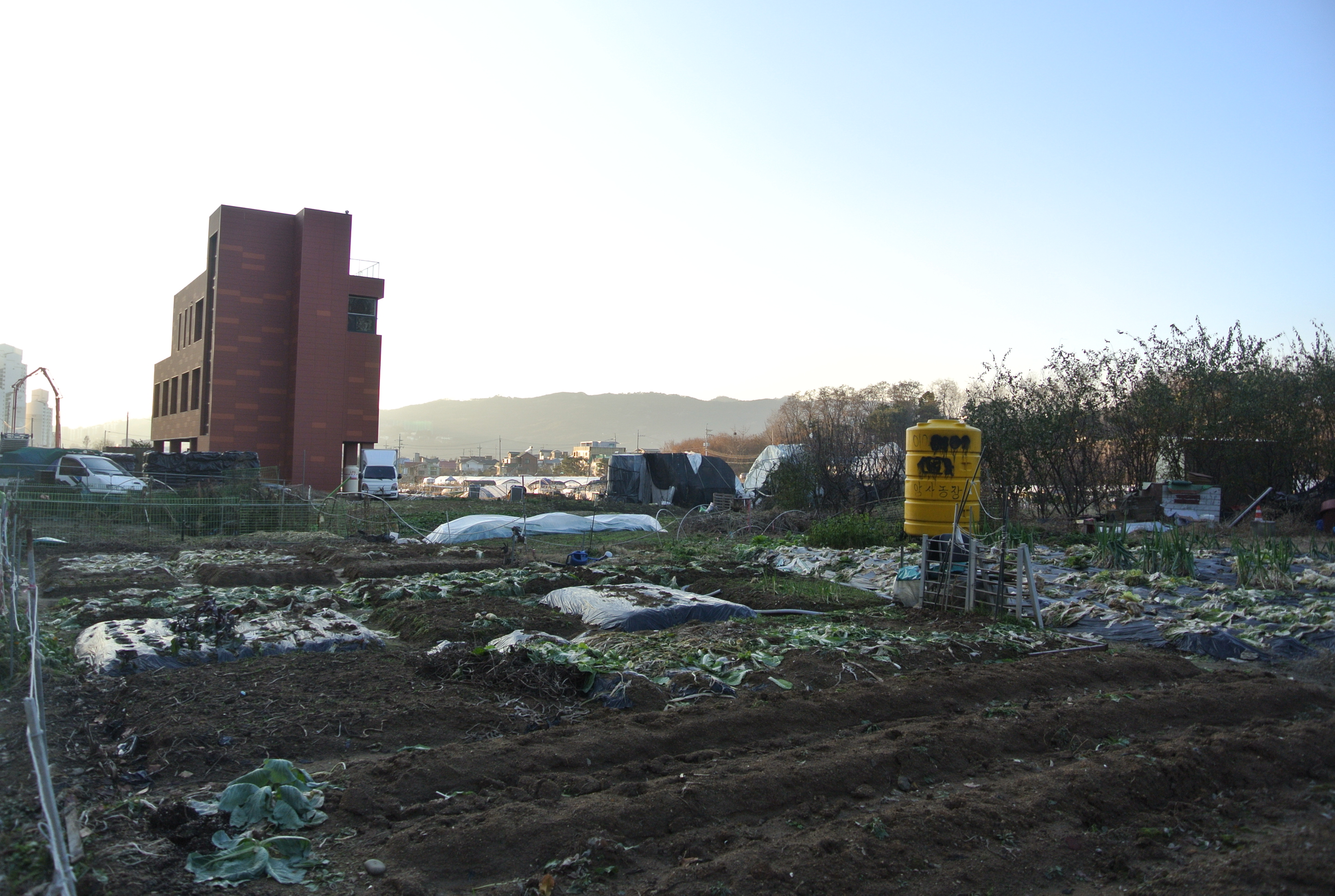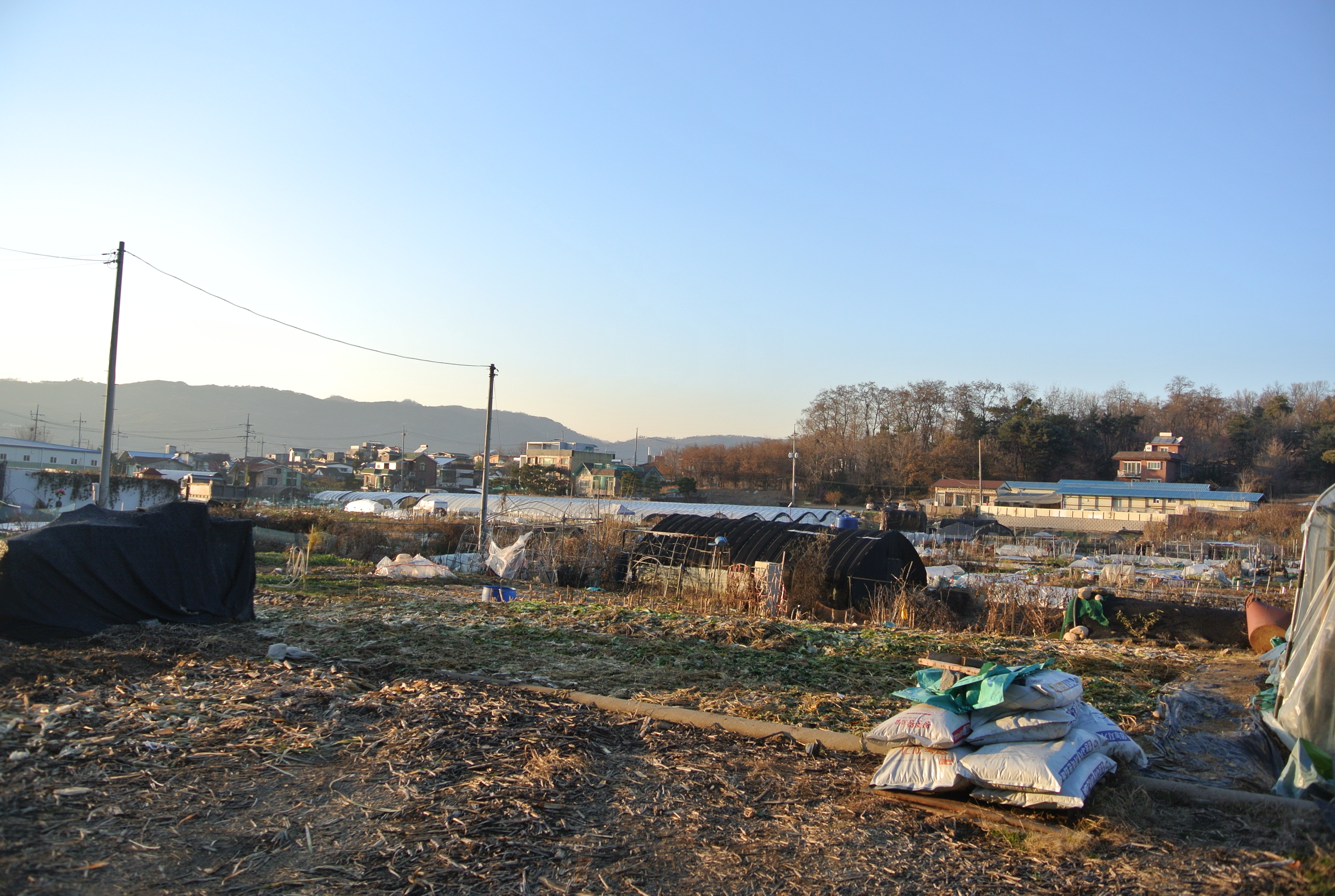 알의 오른쪽 야산은 방죽근린공원, 왼쪽은 고덕천 곁의 강일동 야산.