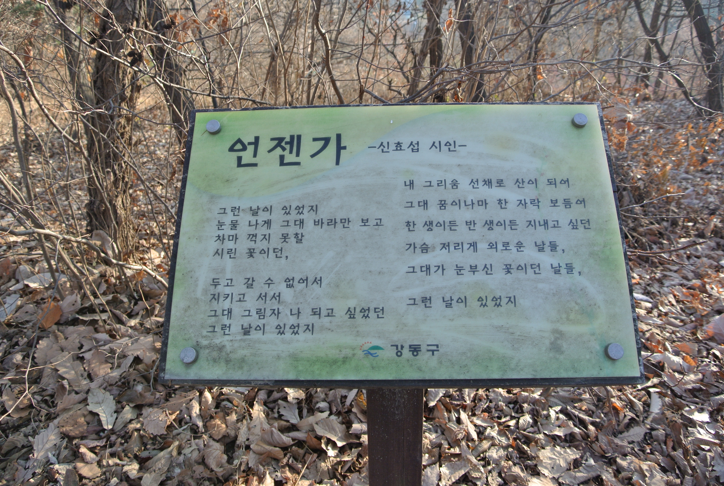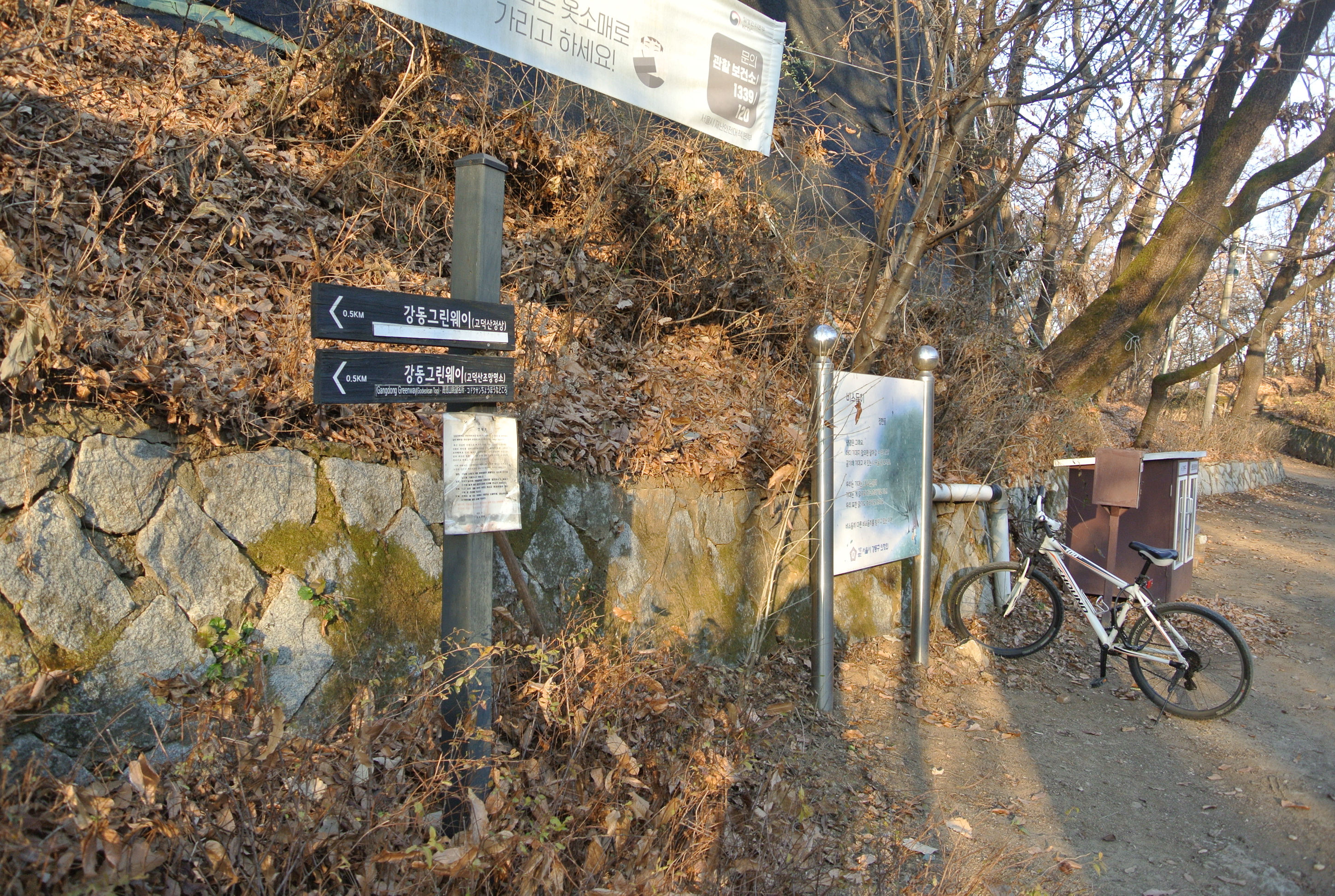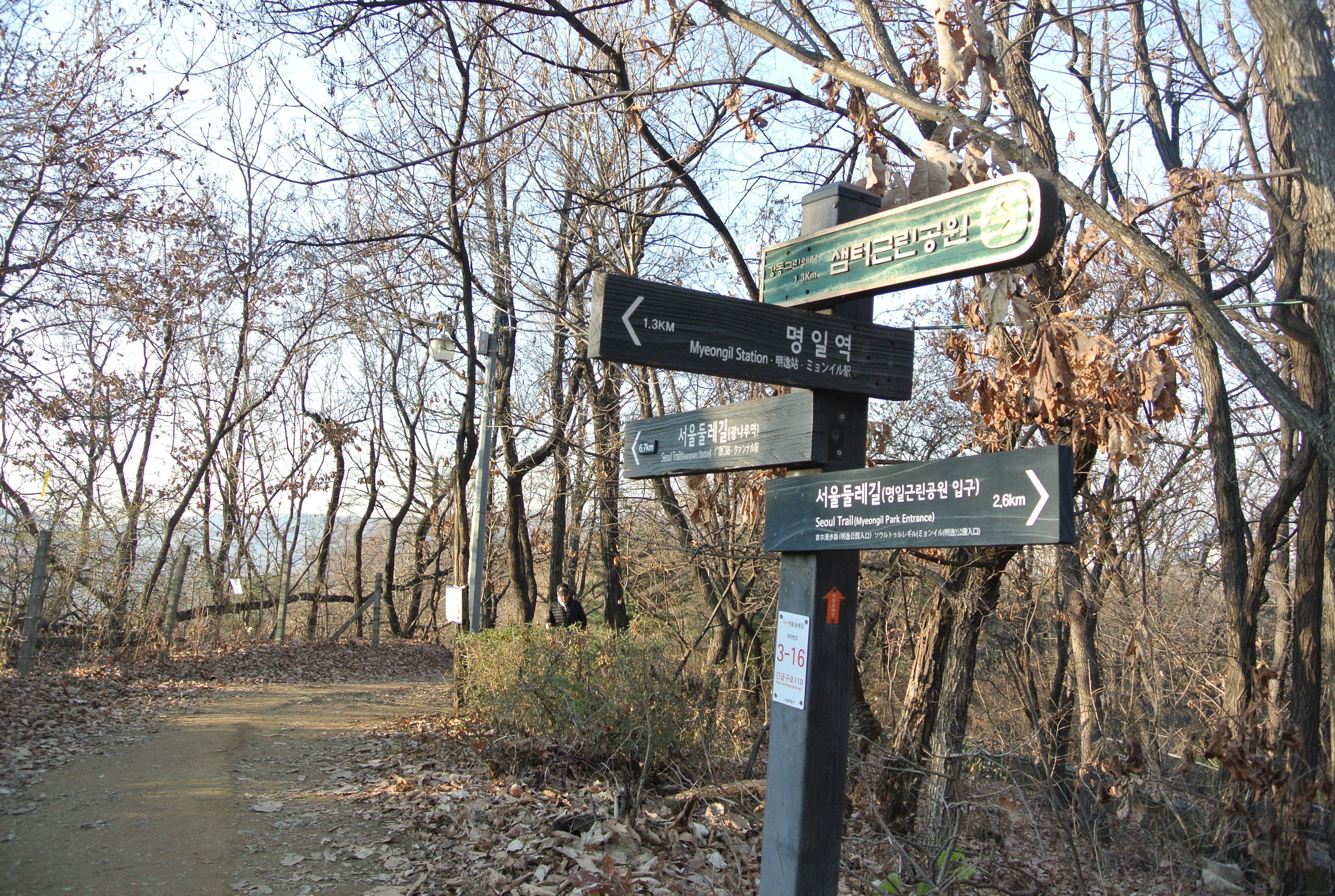 ↘ 샘터근린공원 1.3KM, ↘ 서울둘레길(명일근린공원 입구2.6KM,