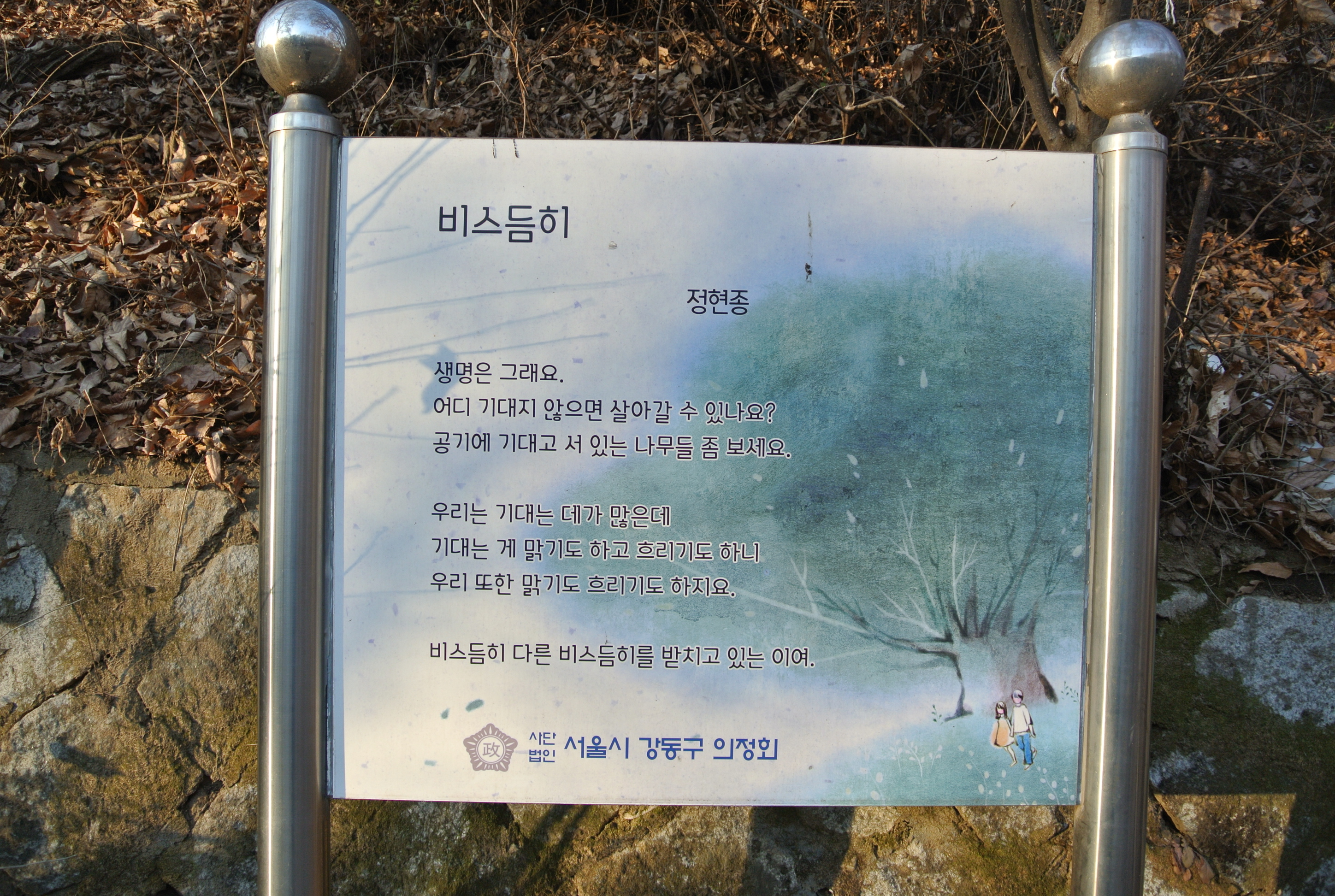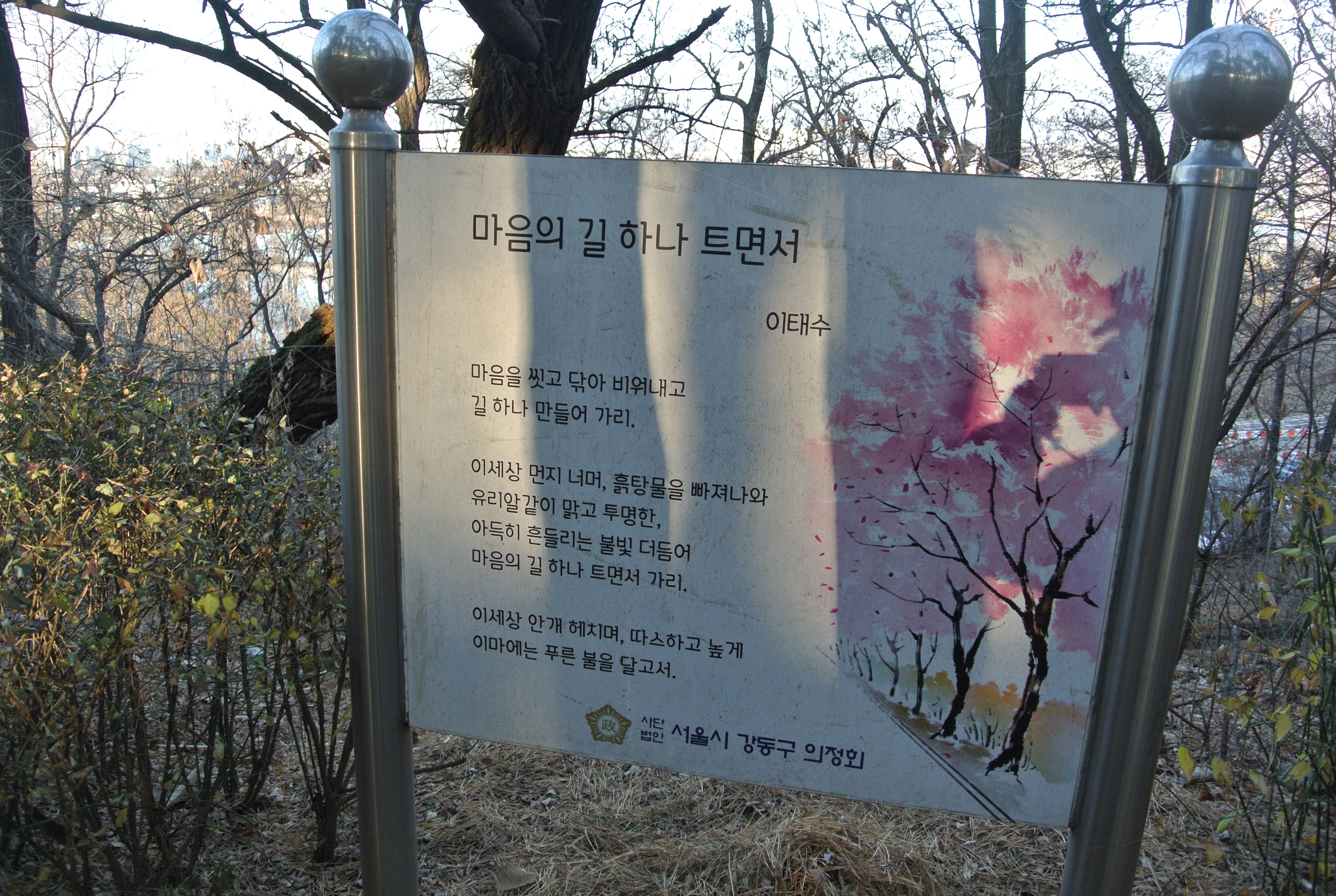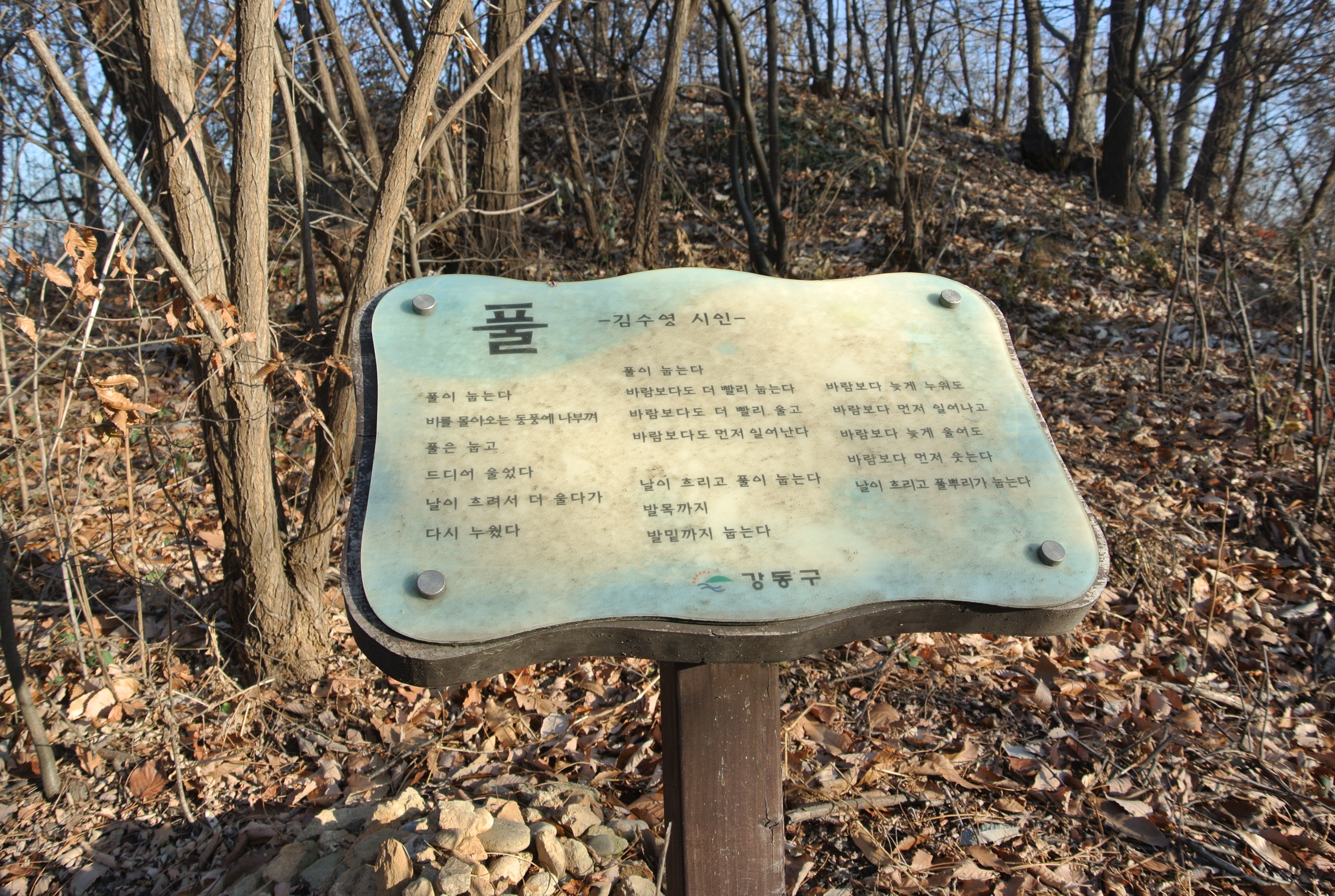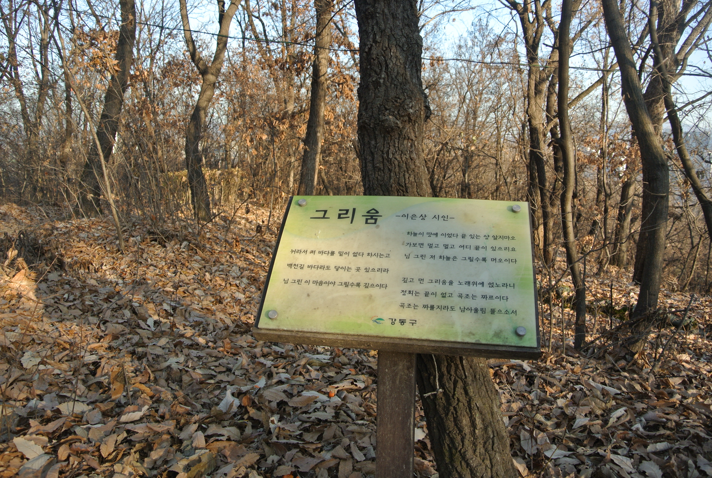 ↘ 샘터근린공원 1.3KM, ↘ 서울둘레길(명일근린공원 입구2.6KM,