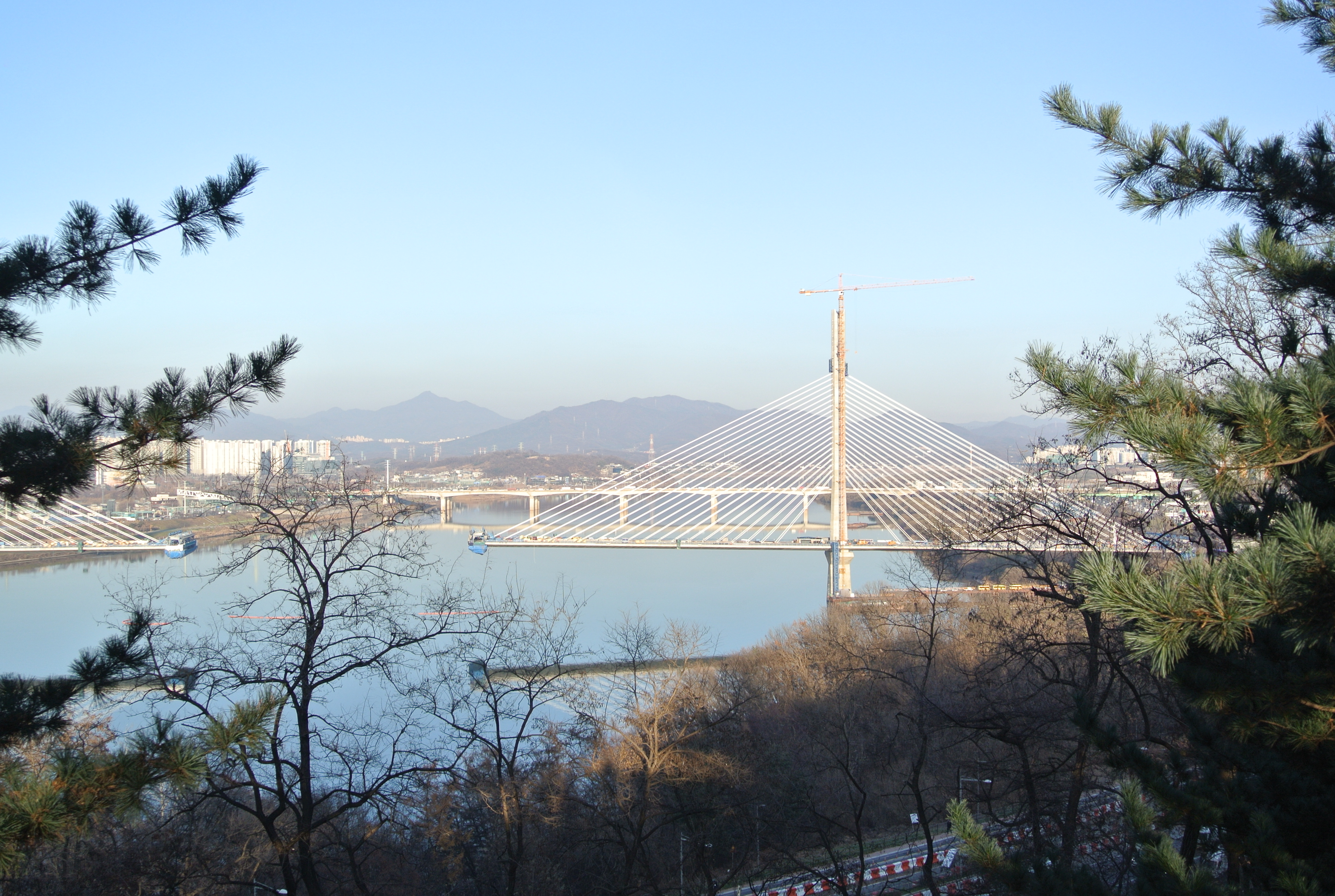 오늘 오후 이발하고서 고덕산을 걸어보았습니다. 나뭇잎이 모두 떨어진 고덕산은 갈색의 빛깔로 조용하기만 했습니다. 고덕산 북쪽 한강에는 포천-세종 고속도로 교량 건설이 이루어지고 있었는데, 하얗게 빛나는 현수교의 자태가 아름다웠습니다.