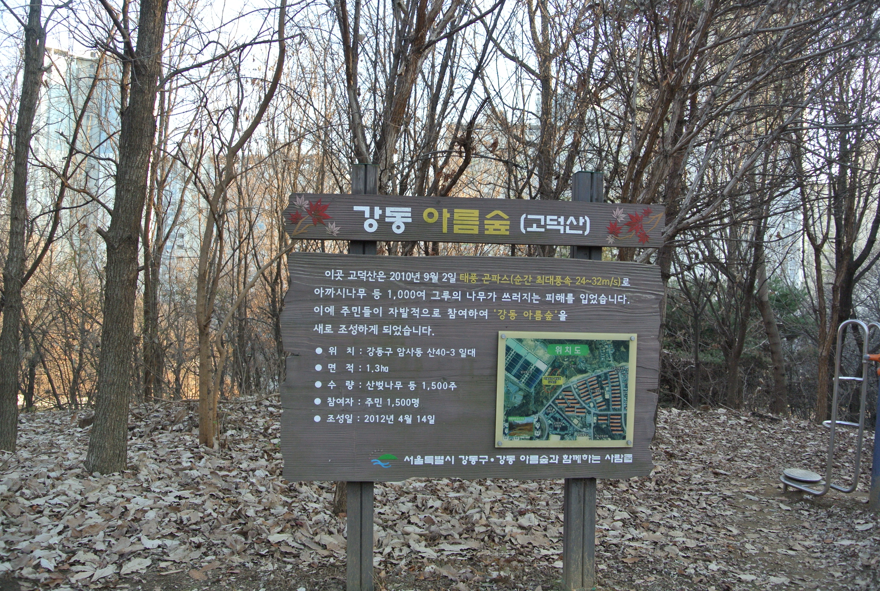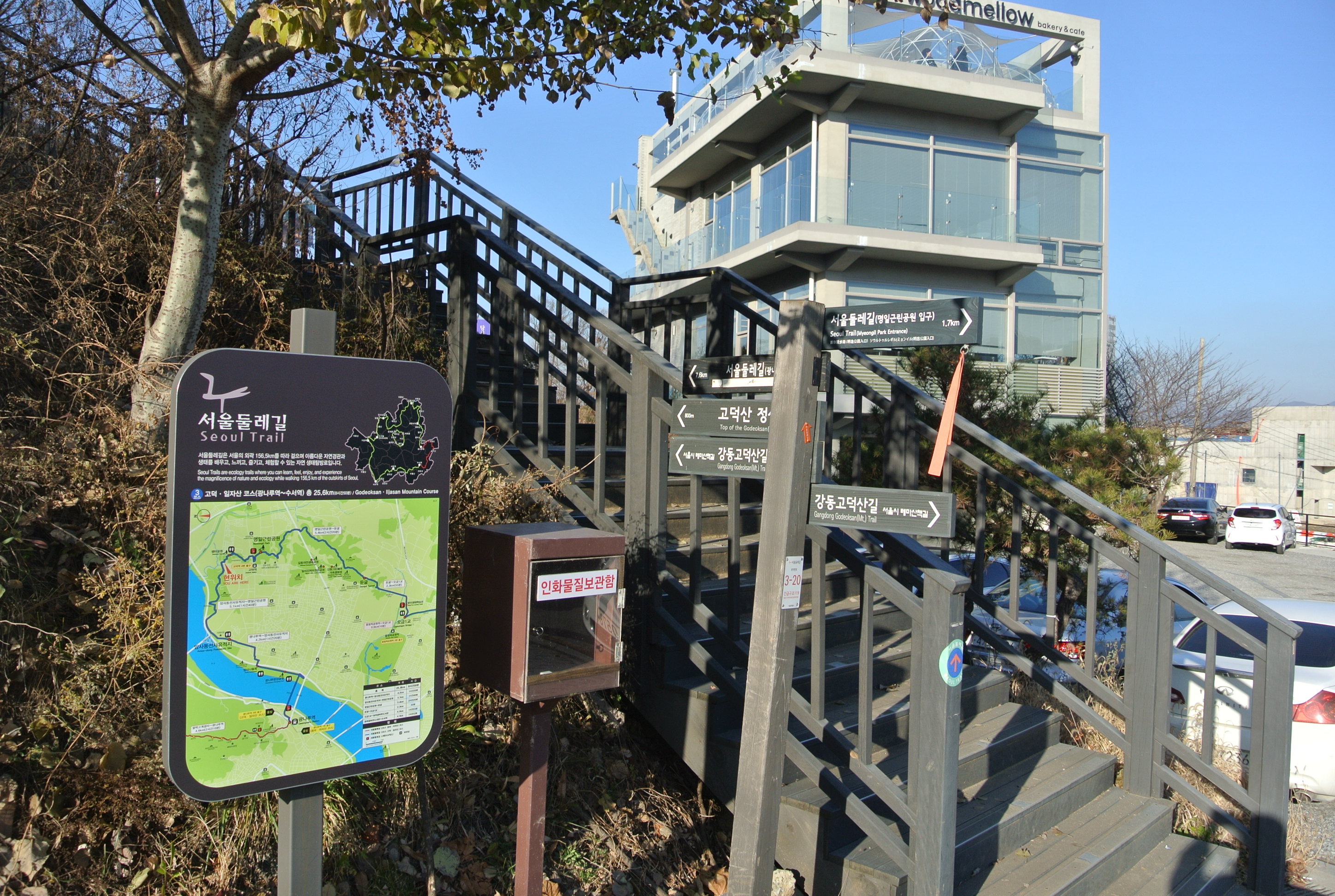 <- 7.8km 서울둘레길(광나루역), <- 800m 고덕산,