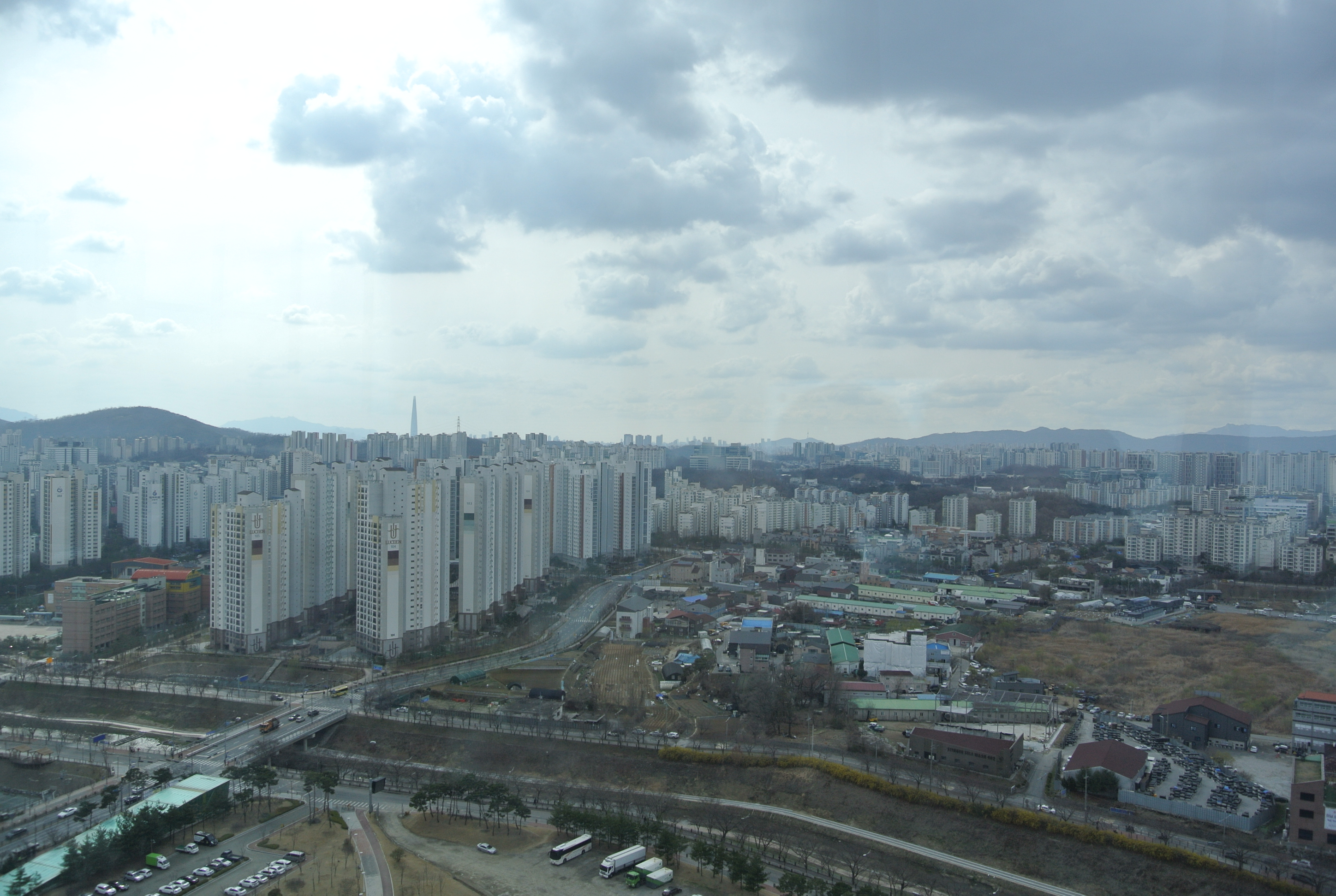 왼쪽 멀리 우리나라 최고의 빌딩, 잠실의 롯데월드타워