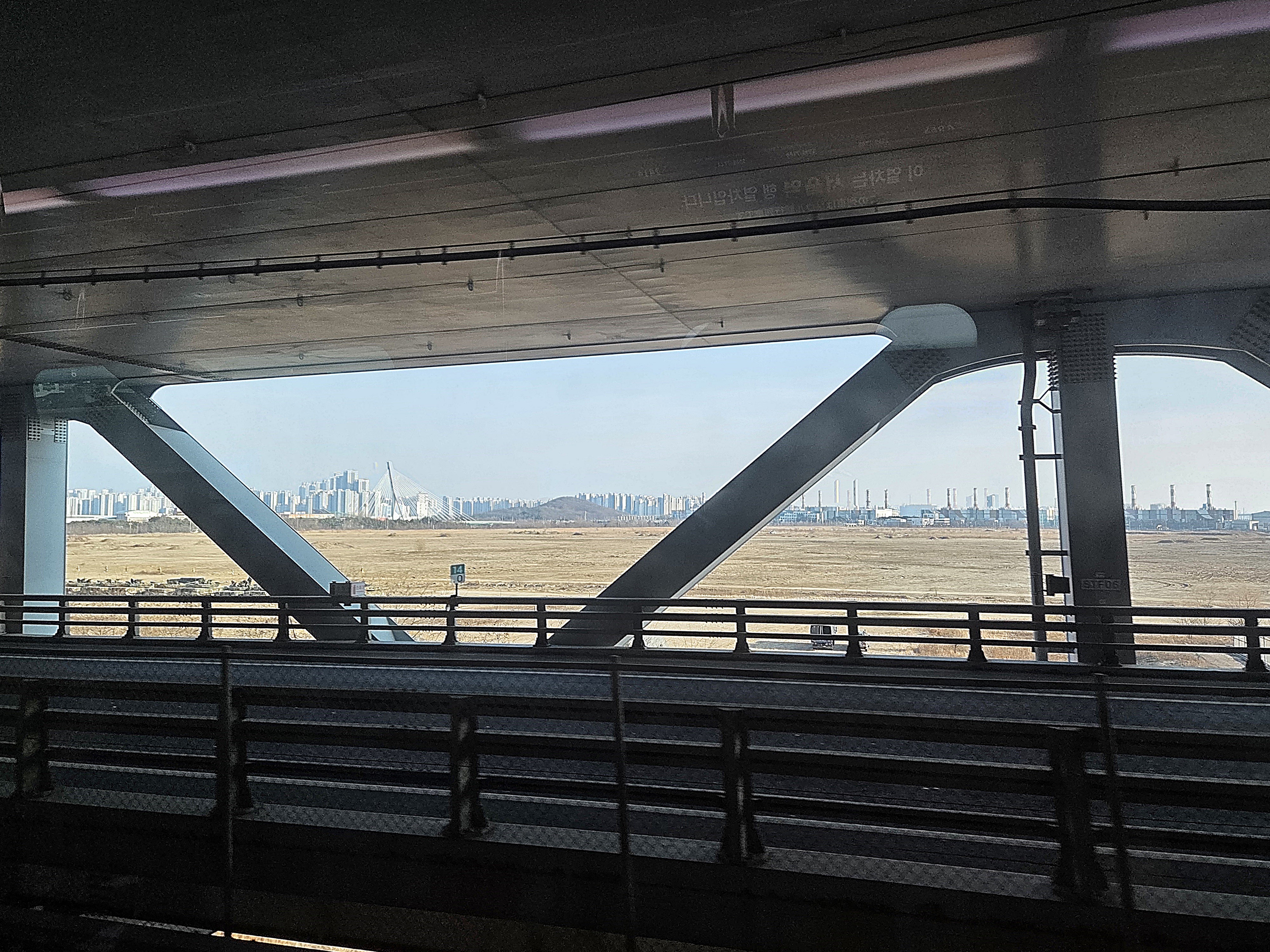 공항철도에서 바라보는 영종대교 사이 인천 청라지역