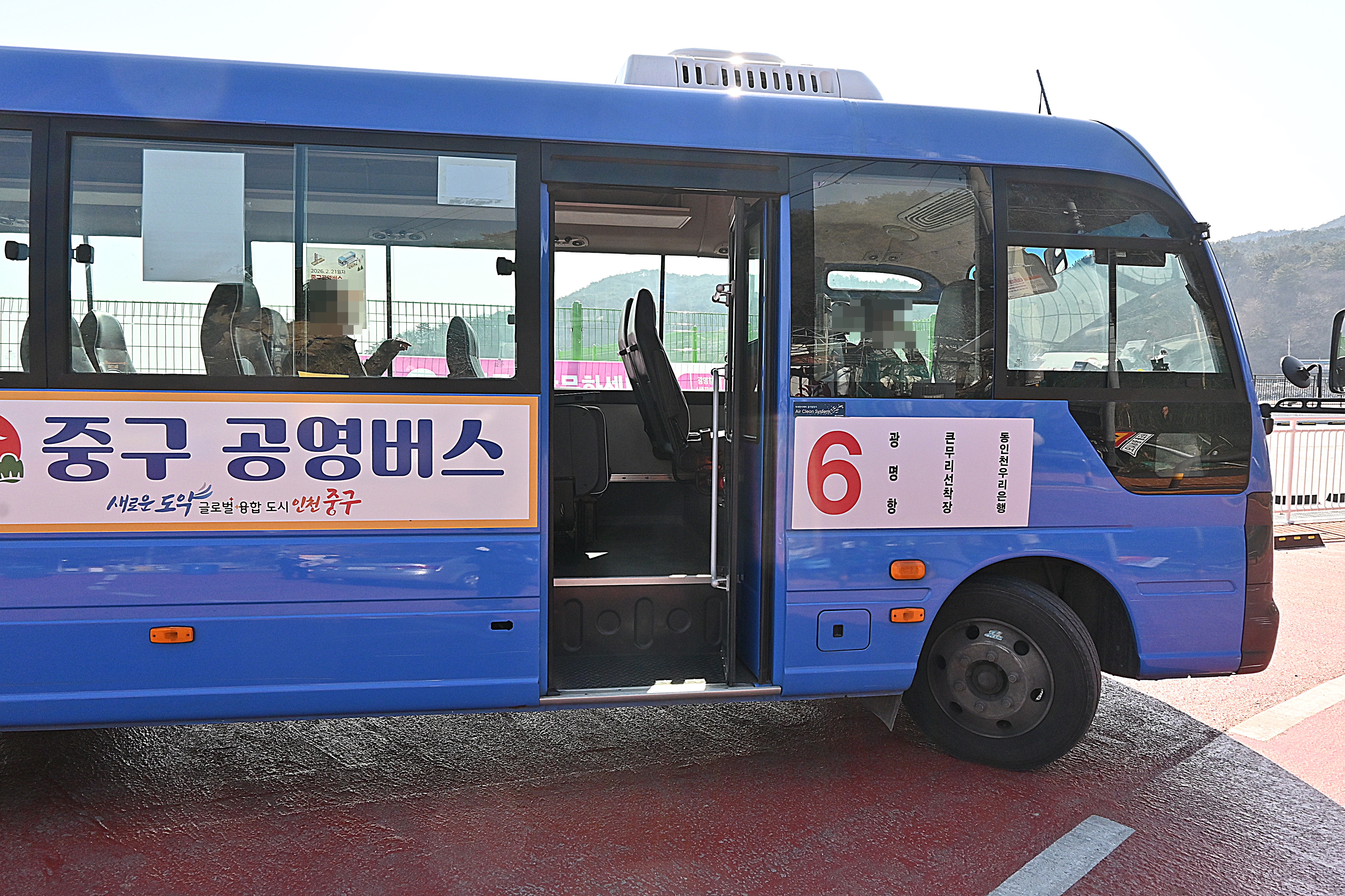 앗, 중구 공영 6번 버스....이 버스를 타고 인천 동인천역으로 나갈 수 있다. 그런데 소요시간 (약 1시간 30분)이 많이 걸린다. 그래서 오늘은 이 버스를 타고 거잠포선착장 정류장에 내려, 인천공항1터미널 가는 버스로 환승하려 한다. 이 버스 보기 참 힘드는데, 오늘은 마침 대기하고 있었다.