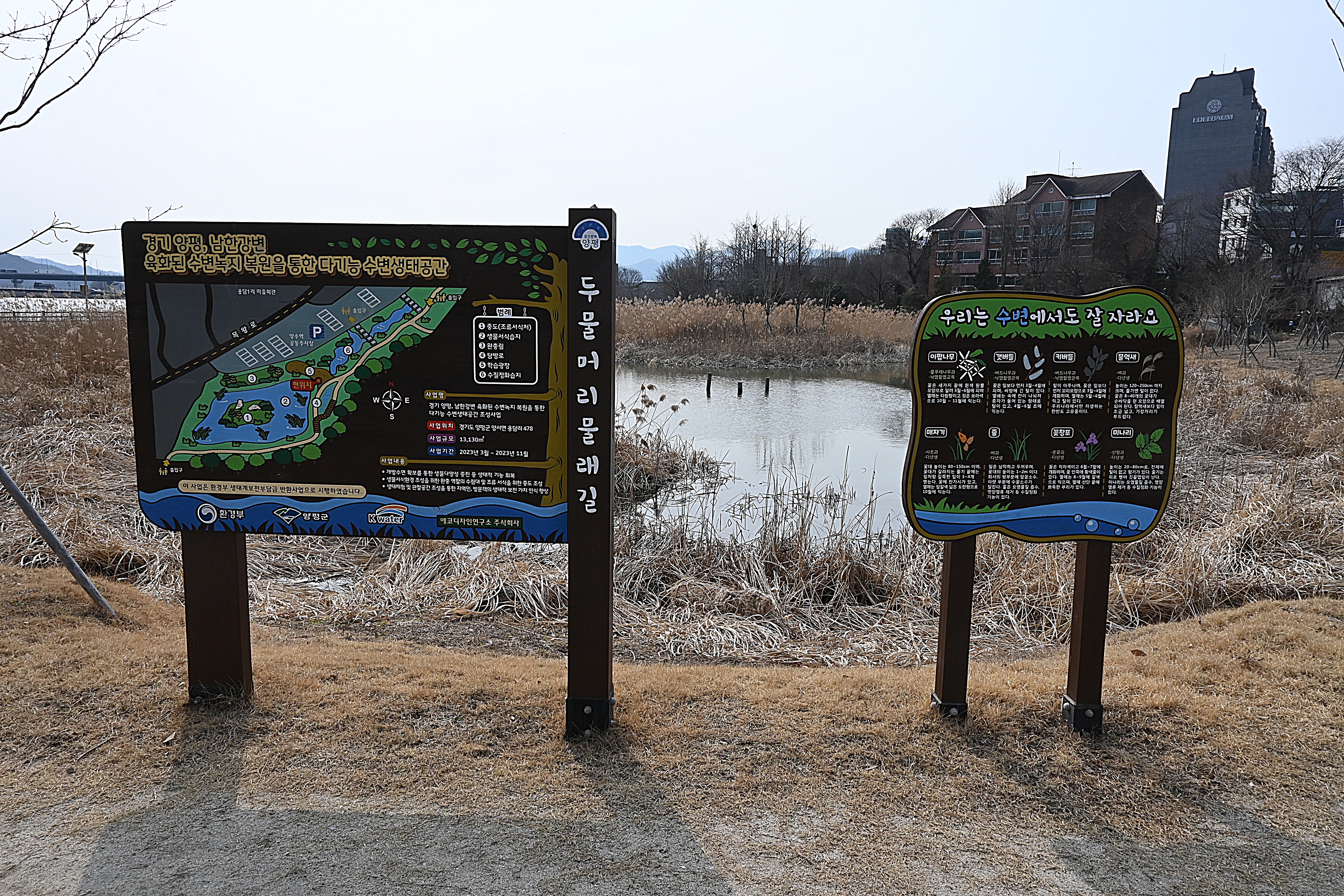 경기 양평, 남한강변, 육화된 수변녹지 복원을 통한 다긴믕 수변생태공간
